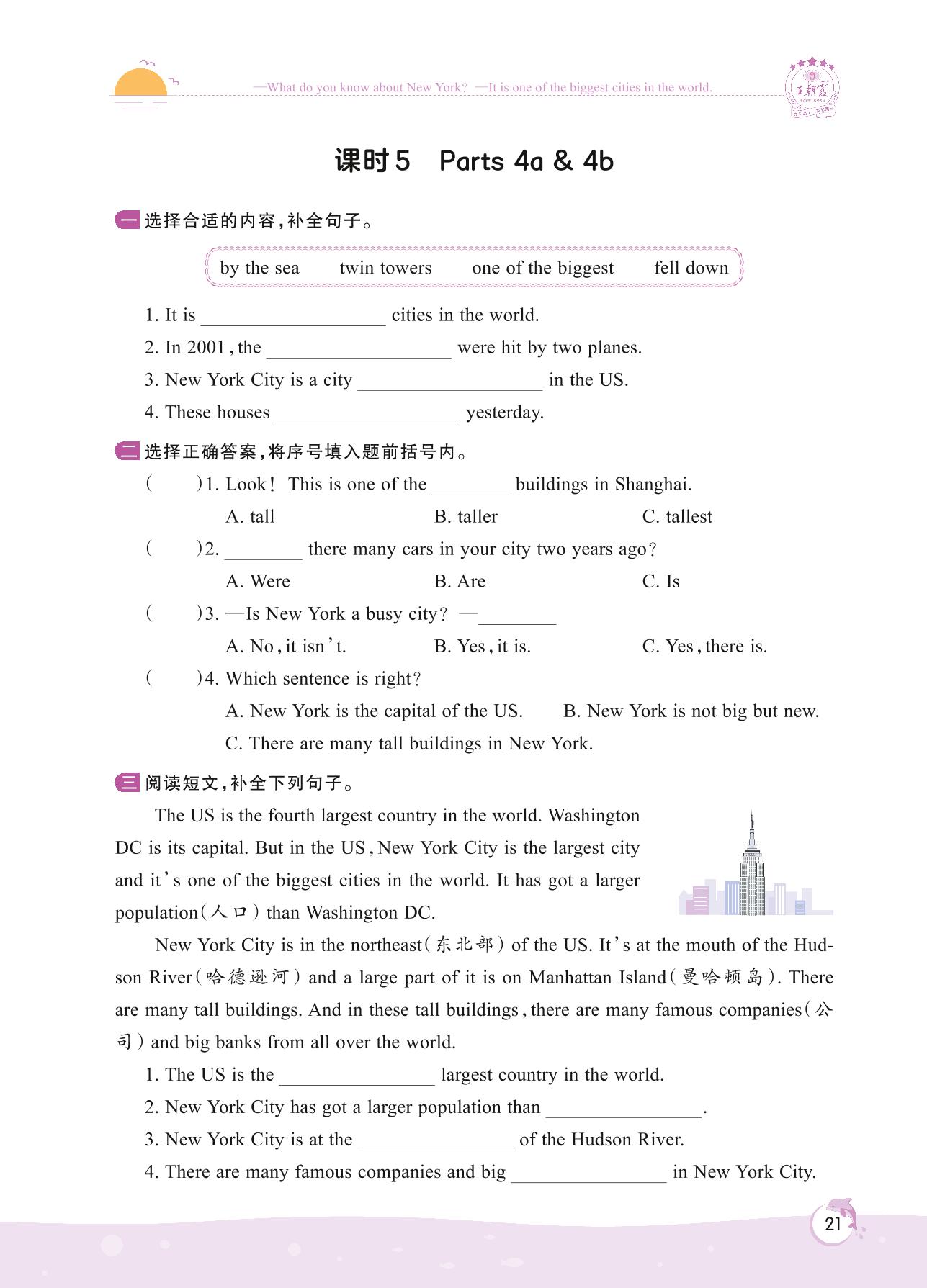 2022上册六年级英语剑桥版 Unit 2—课时 5 Parts 4a & 4b