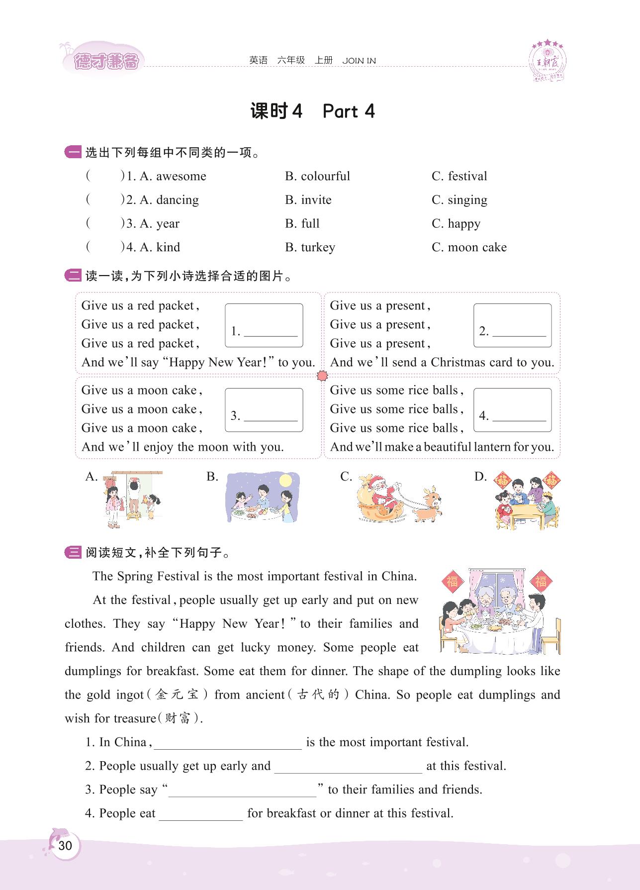 2022上册六年级英语剑桥版 Unit 3—课时 4 Part 4