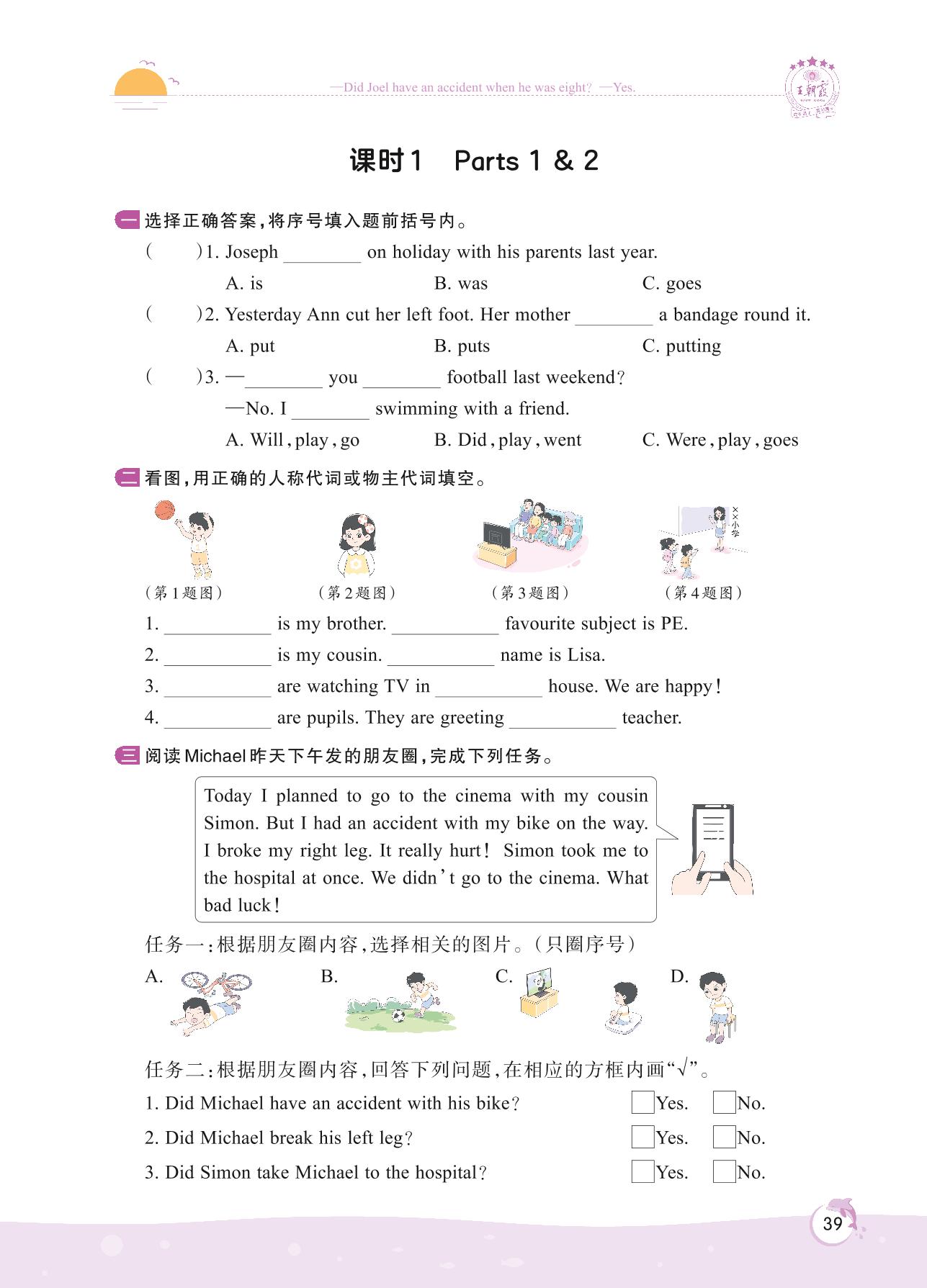 2022上册六年级英语剑桥版 Unit 4—课时 1 Parts 1 & 2