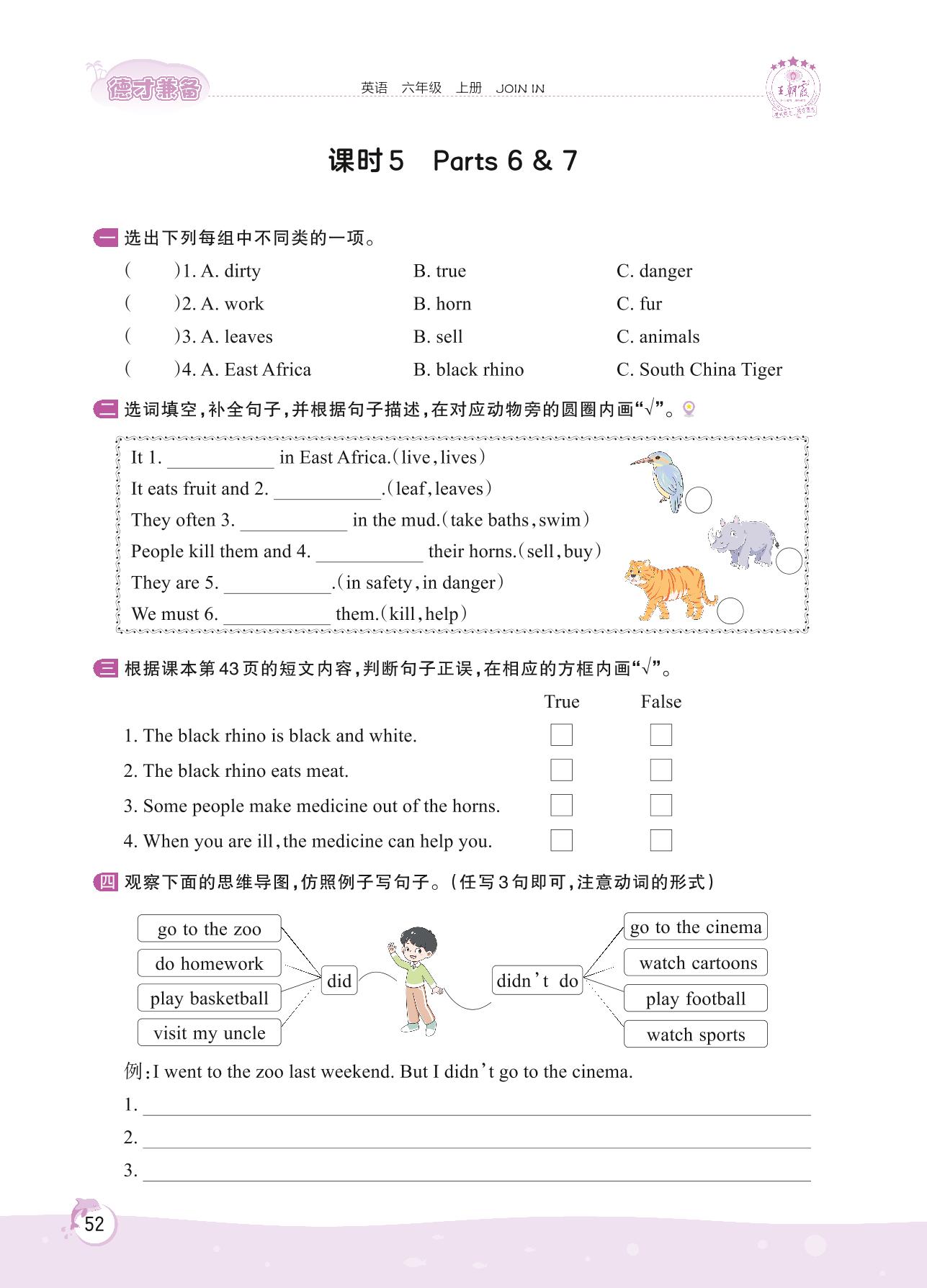 2022上册六年级英语剑桥版 Unit 5—课时 5 Parts 6 & 7