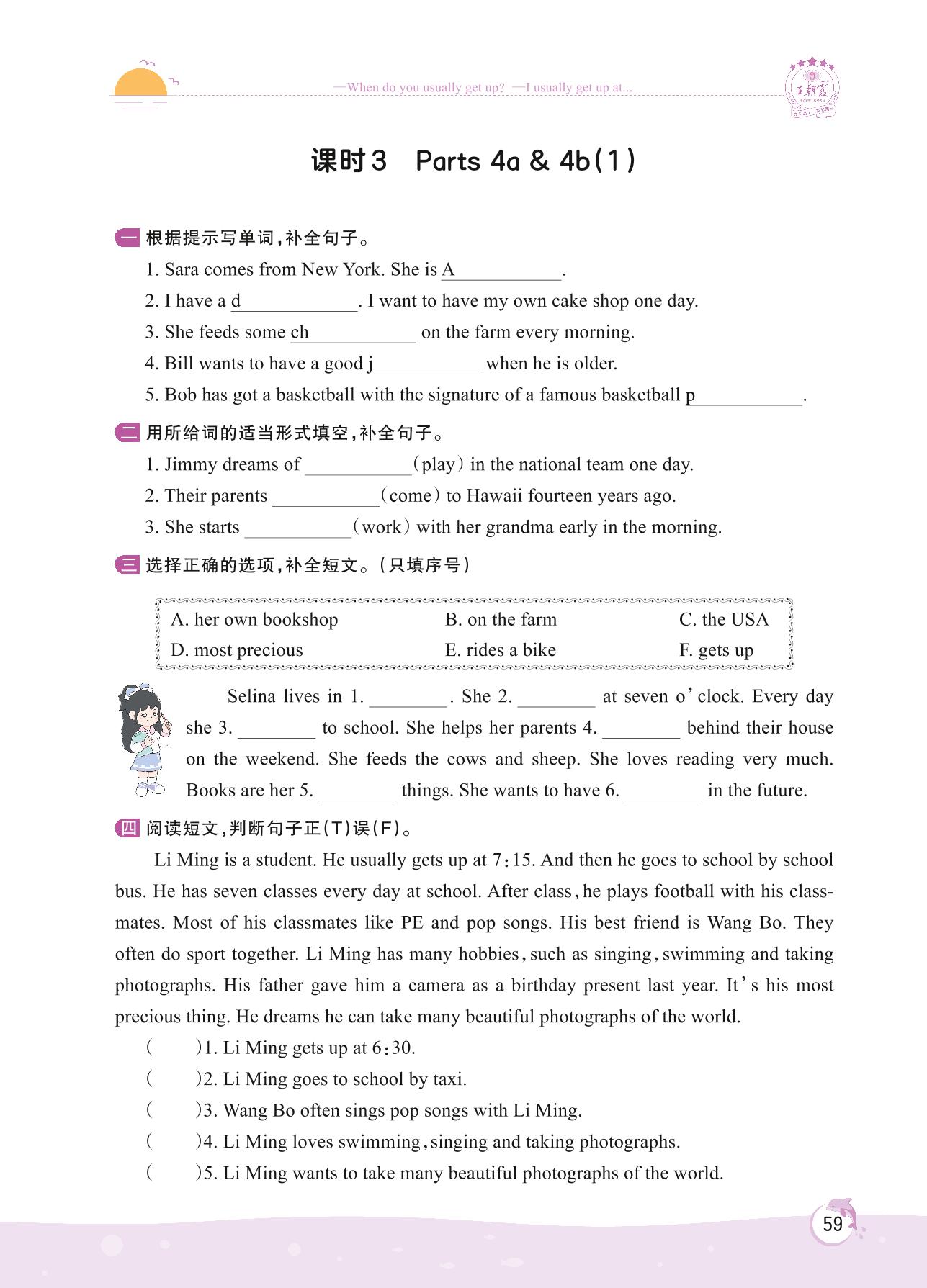 2022上册六年级英语剑桥版 Unit 6—课时 3 Parts 4a & 4b(1)