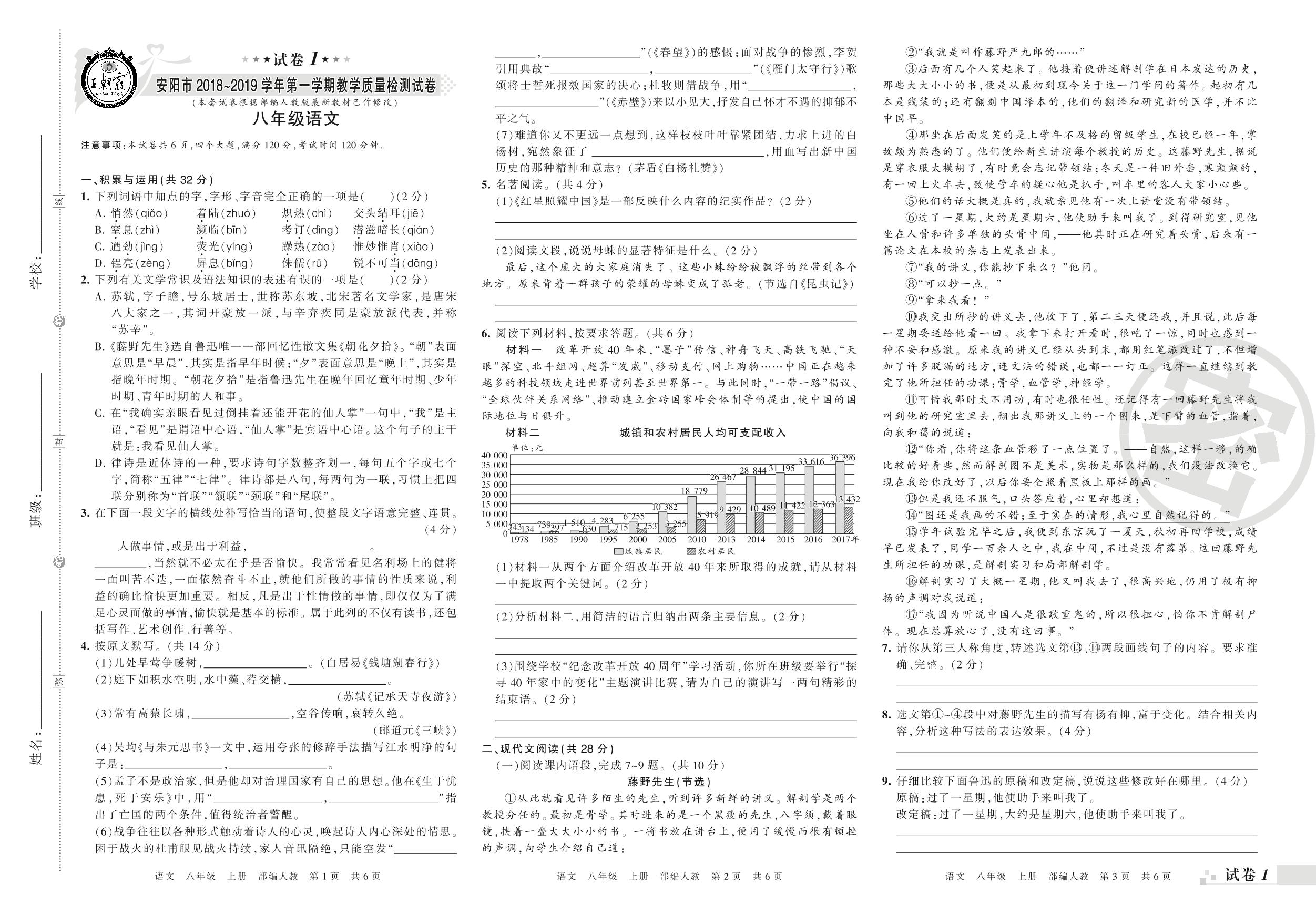 2018-2019学年第一学期安阳市八年级语文试卷(人教版)【1】