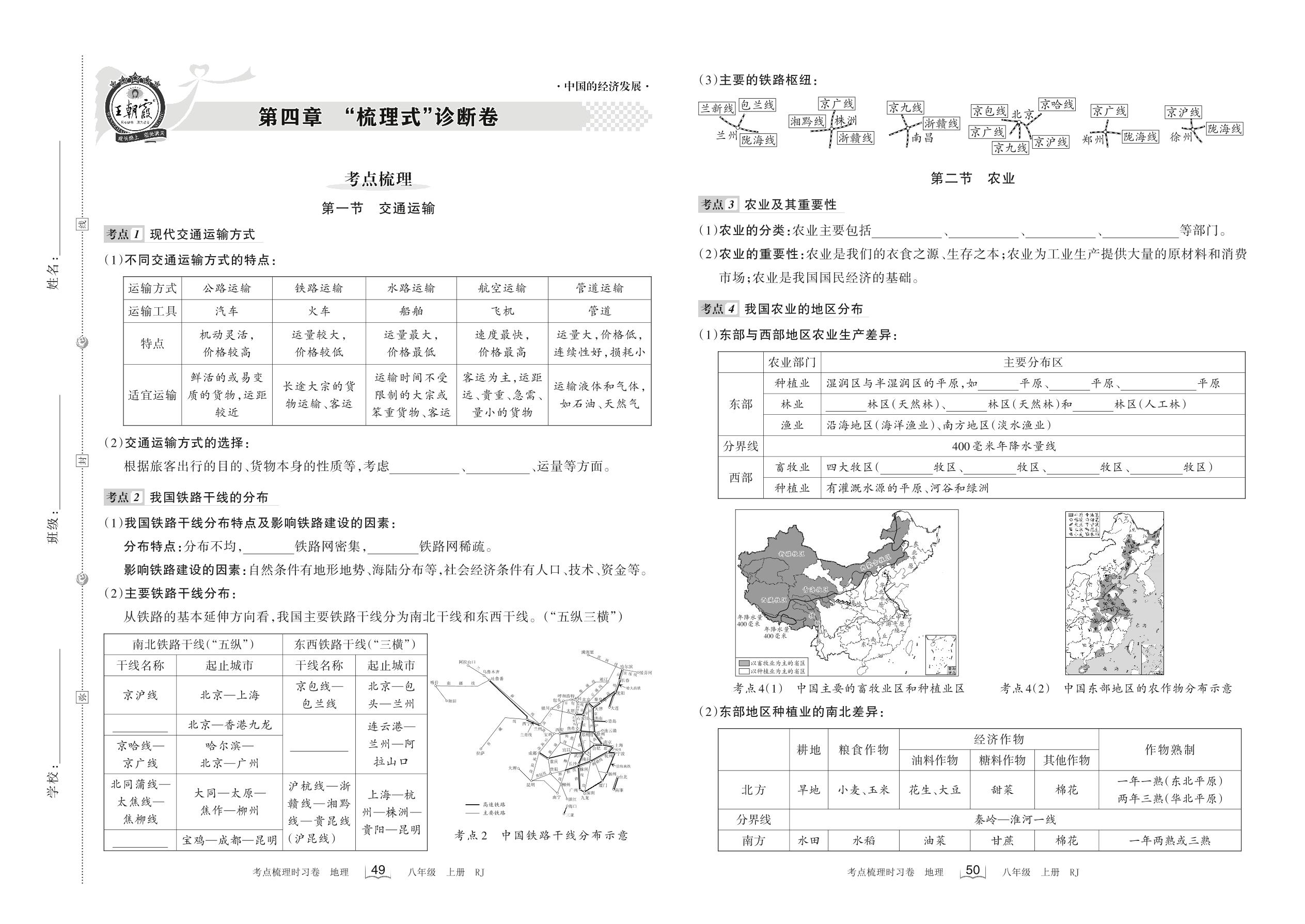 2022上册八年级地理人教版 第四章 “梳理式”诊断卷