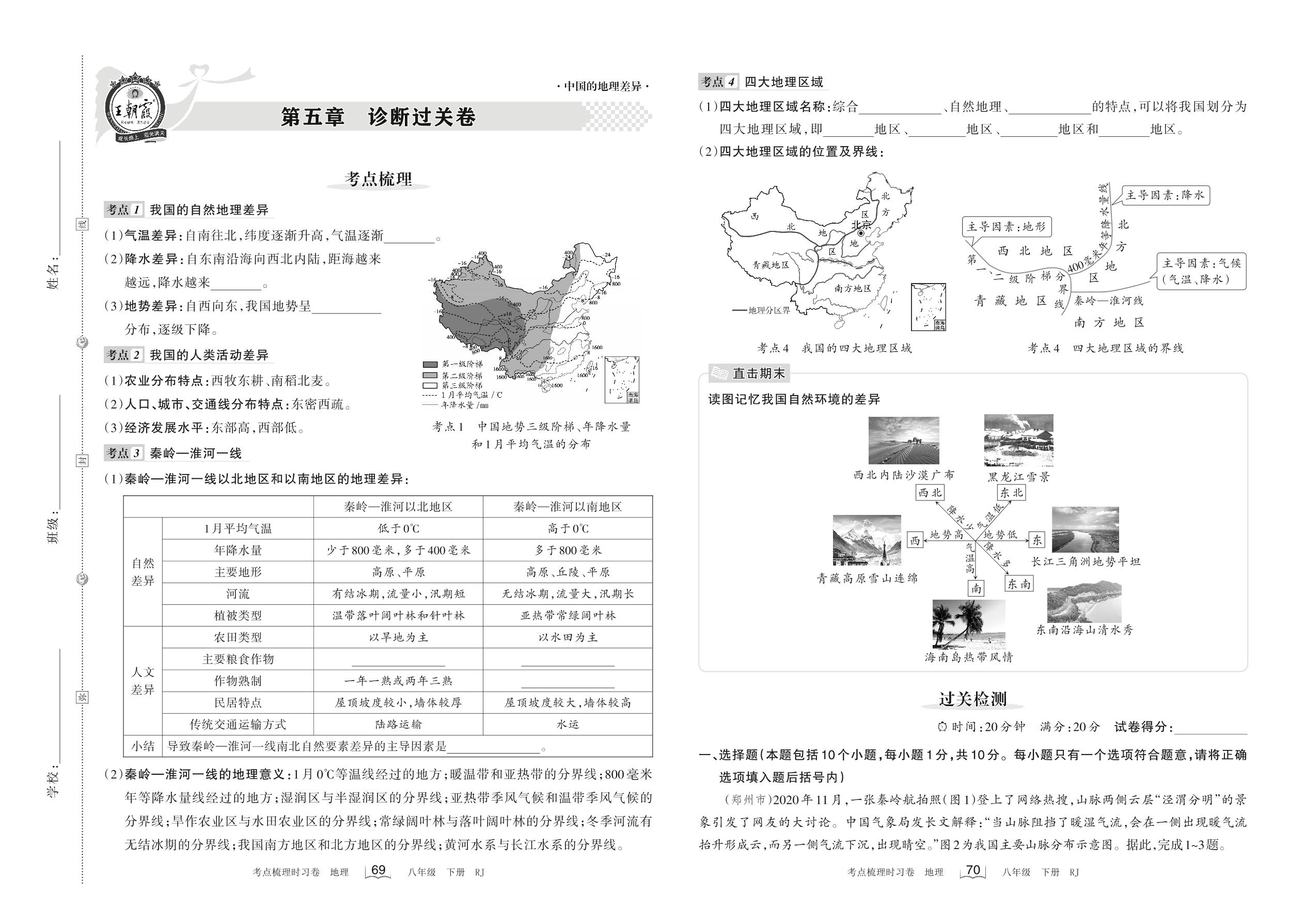 2023下册八年级地理人教版 第五章 诊断过关卷