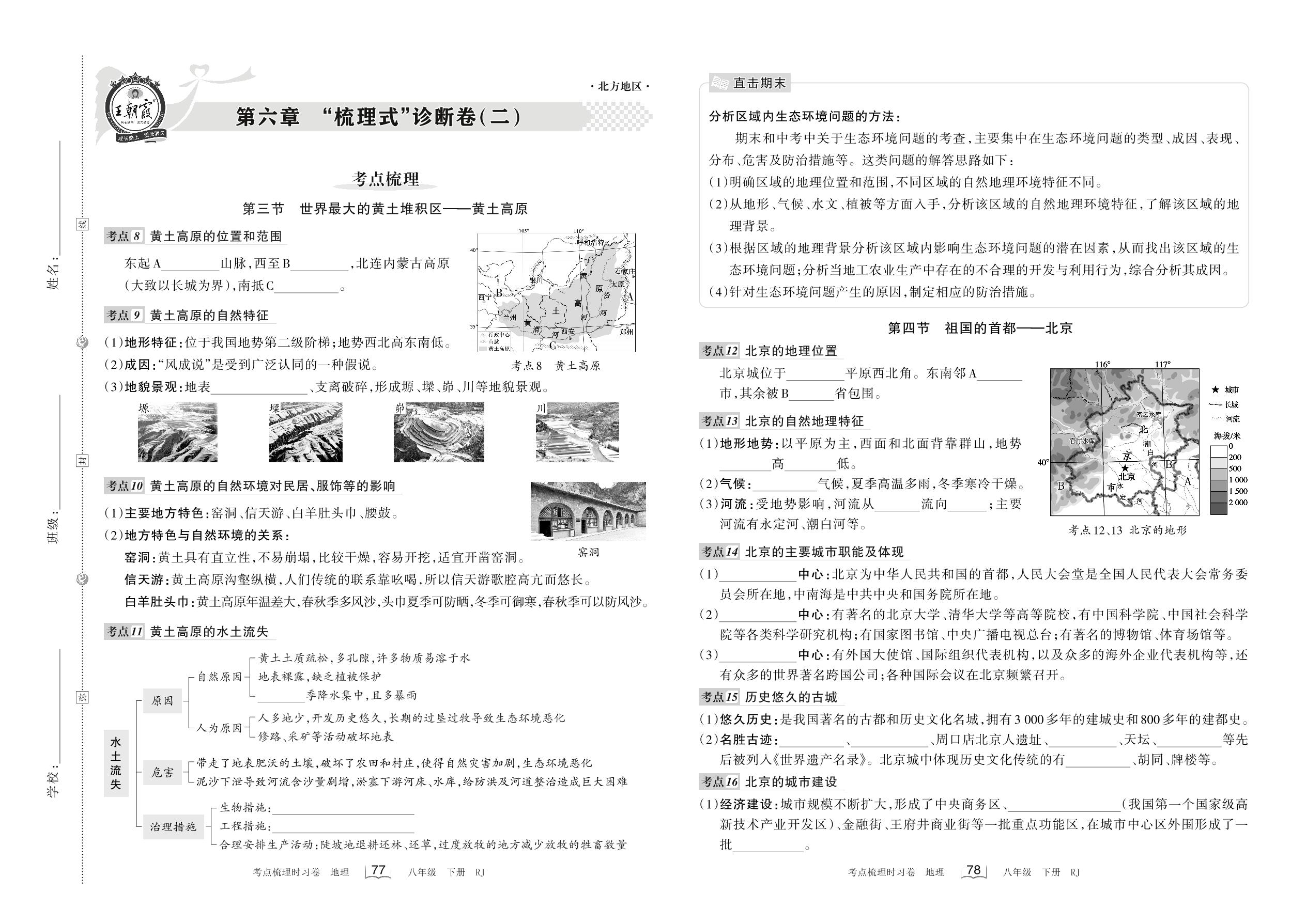 2023下册八年级地理人教版 第六章 “梳理式”诊断卷(二)