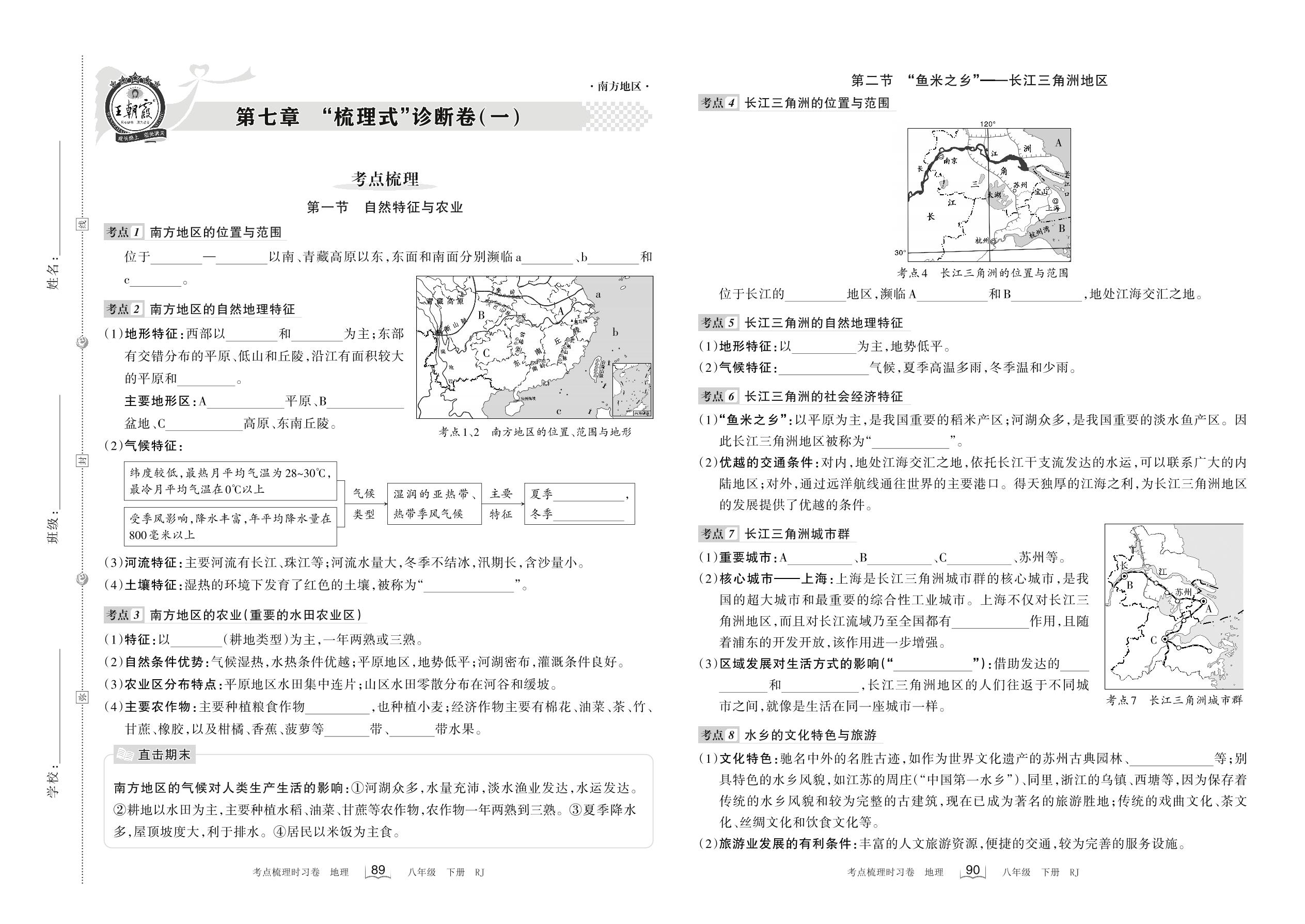 2023下册八年级地理人教版 第七章 “梳理式”诊断卷(一)