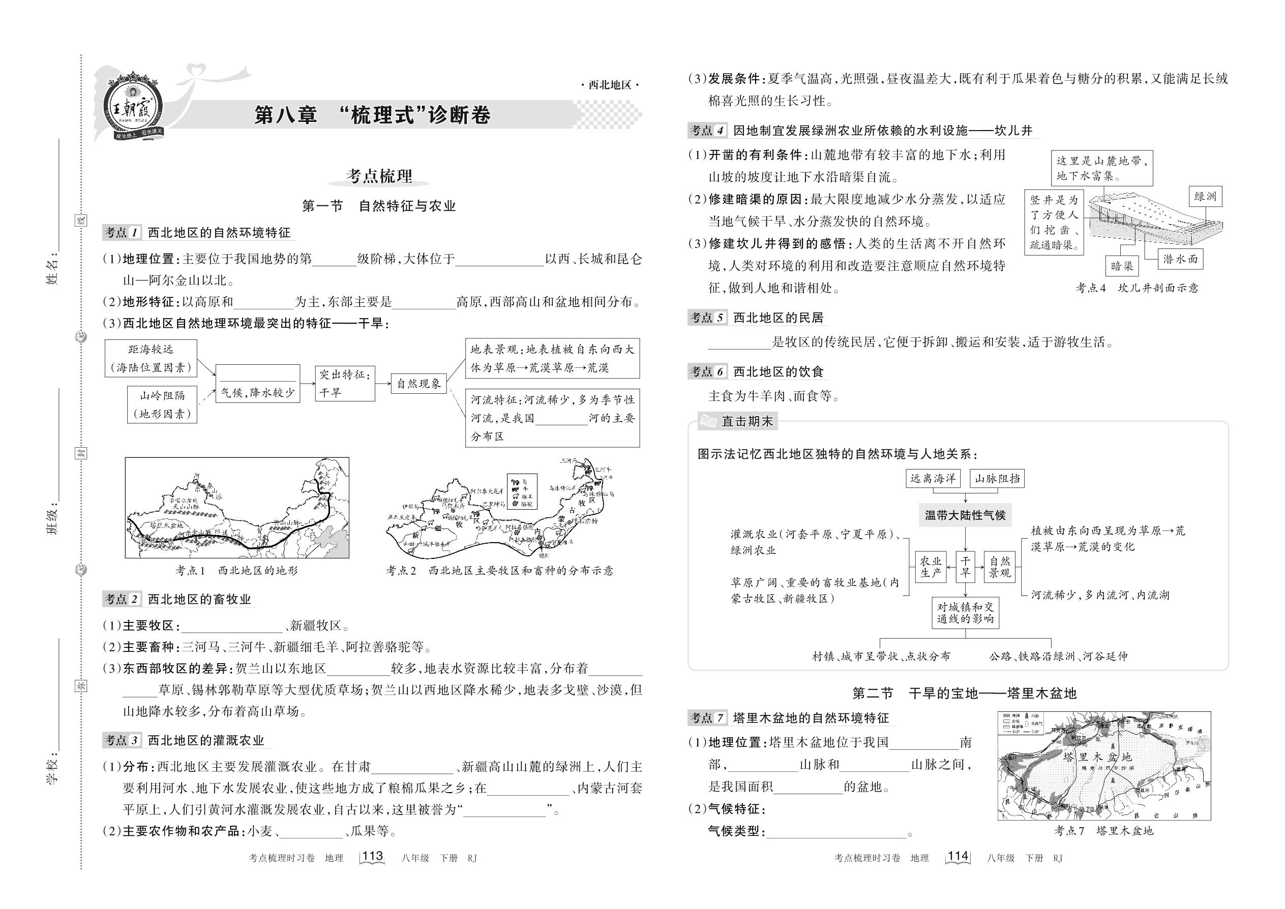 2023下册八年级地理人教版 第八章 “梳理式”诊断卷