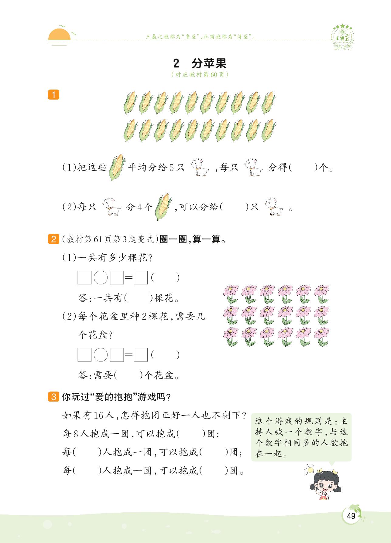 2022上册二年级数学北师版 第七单元 分一分与除法——2 分苹果
