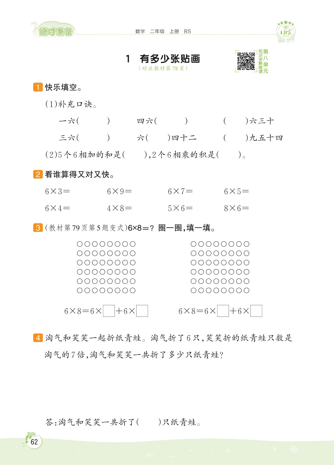 2022上册二年级数学北师版 第八单元 6~9的乘法口诀——1 有多少张贴画
