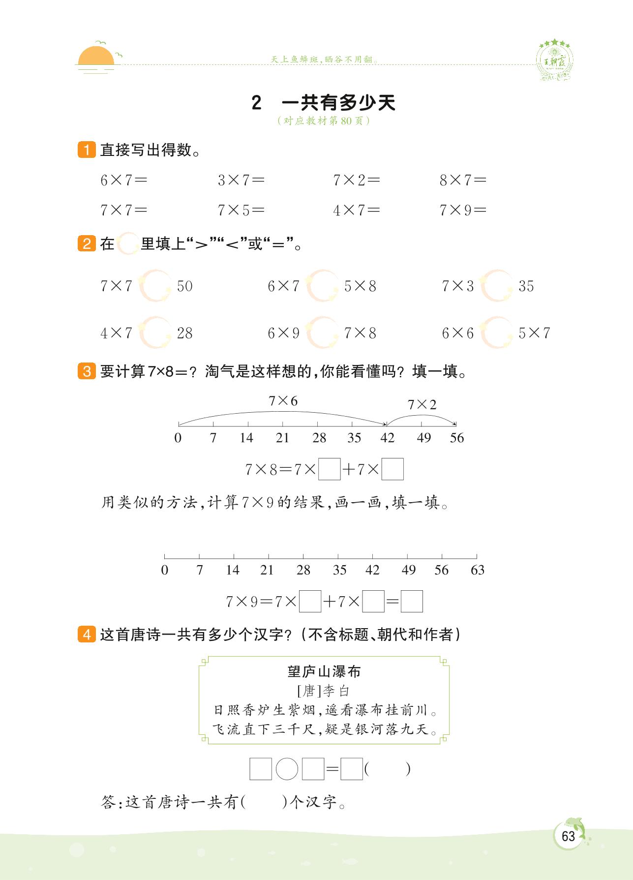 2022上册二年级数学北师版 第八单元 6~9的乘法口诀——2 一共有多少天