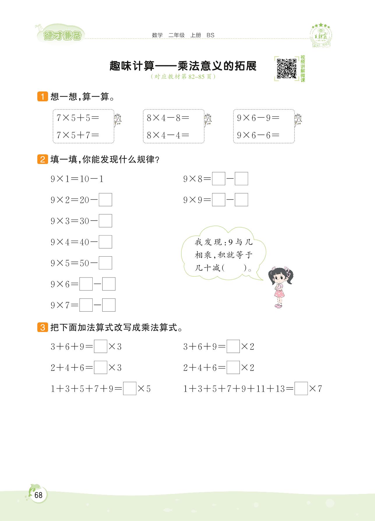 2022上册二年级数学北师版 第八单元 6~9的乘法口诀——趣味计算 乘法意义的拓展