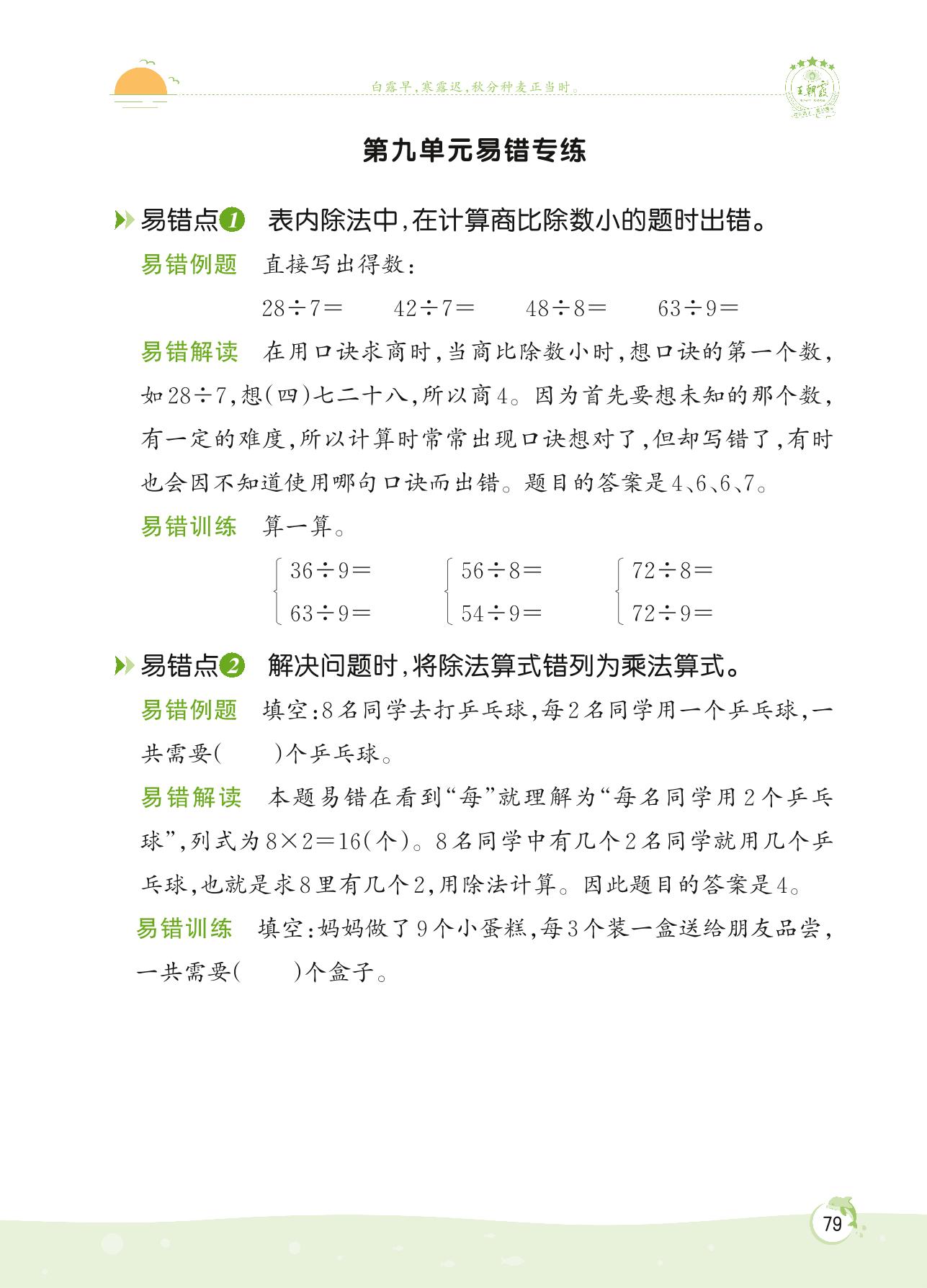 2022上册二年级数学北师版 第九单元 除法——第九单元易错专练
