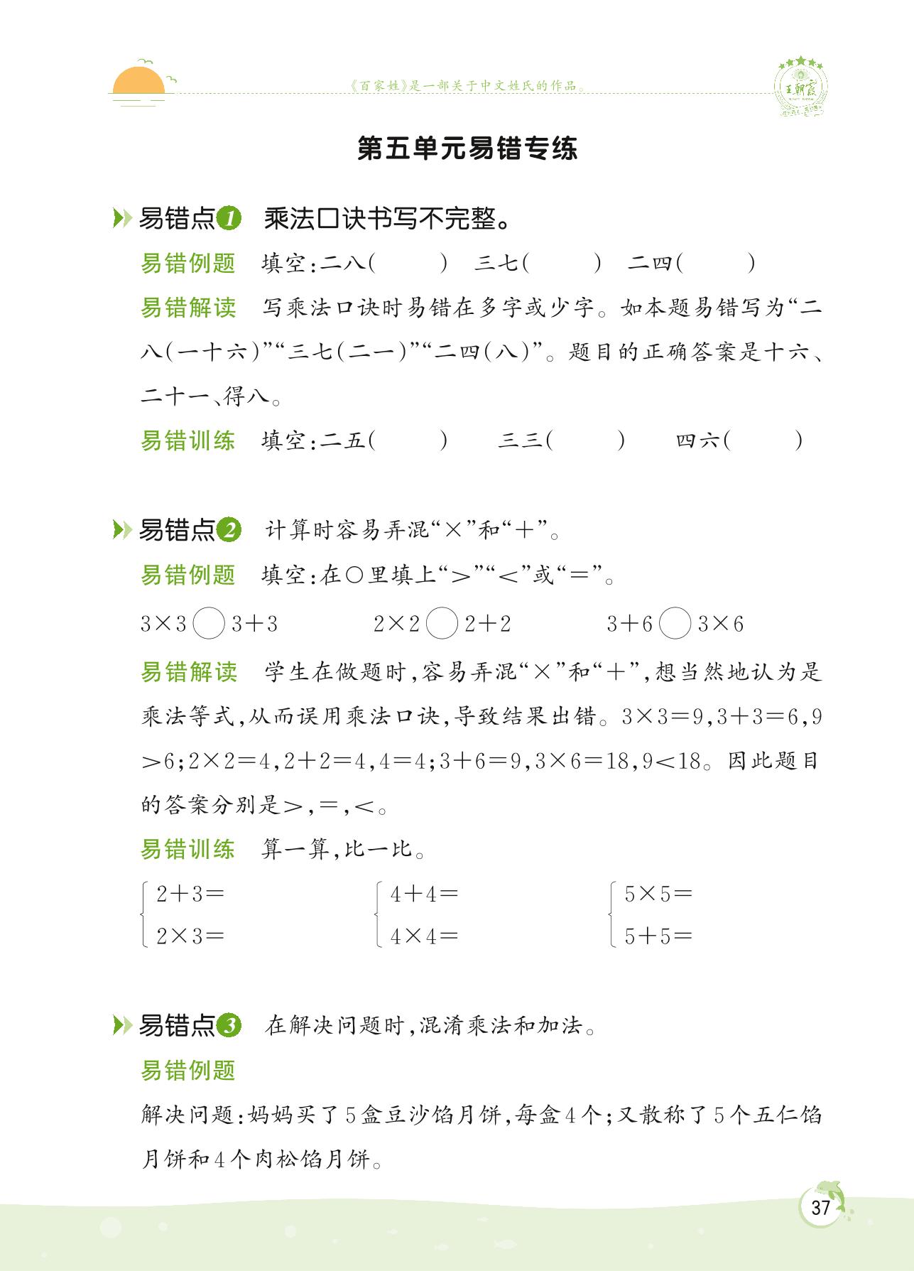 2022上册二年级数学北师版 第五单元 2~5的乘法口诀——第五单元易错专练