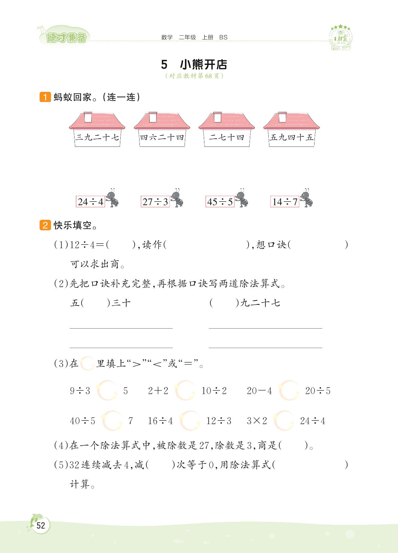 2022上册二年级数学北师版 第七单元 分一分与除法——5 小熊开店