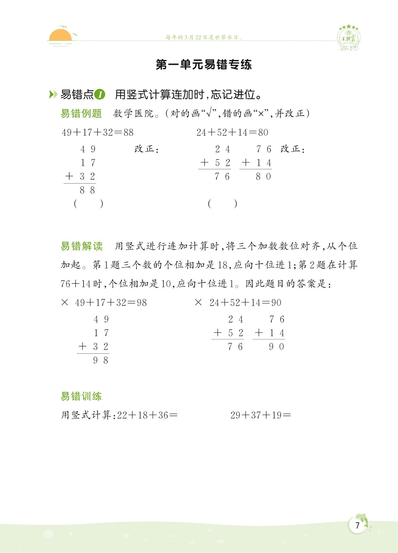 2022上册二年级数学北师版 第一单元 加与减——第一单元易错专练