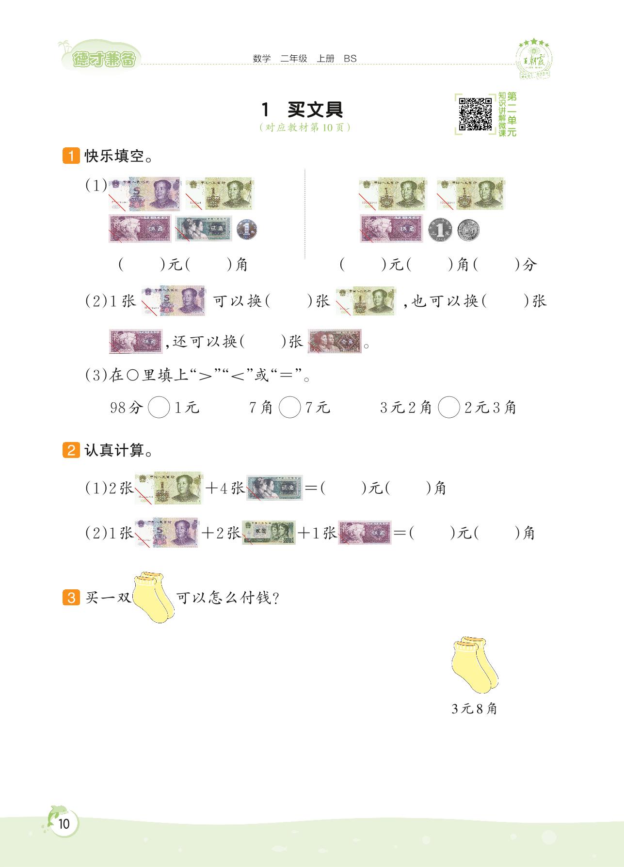 2022上册二年级数学北师版 第二单元 购物——1 买文具