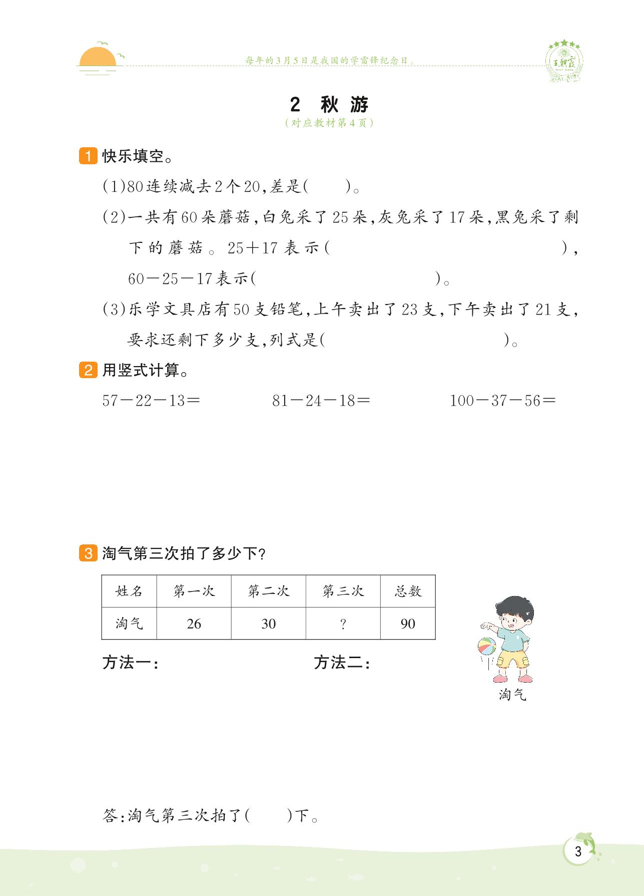 2022上册二年级数学北师版 第一单元 加与减——2 秋游