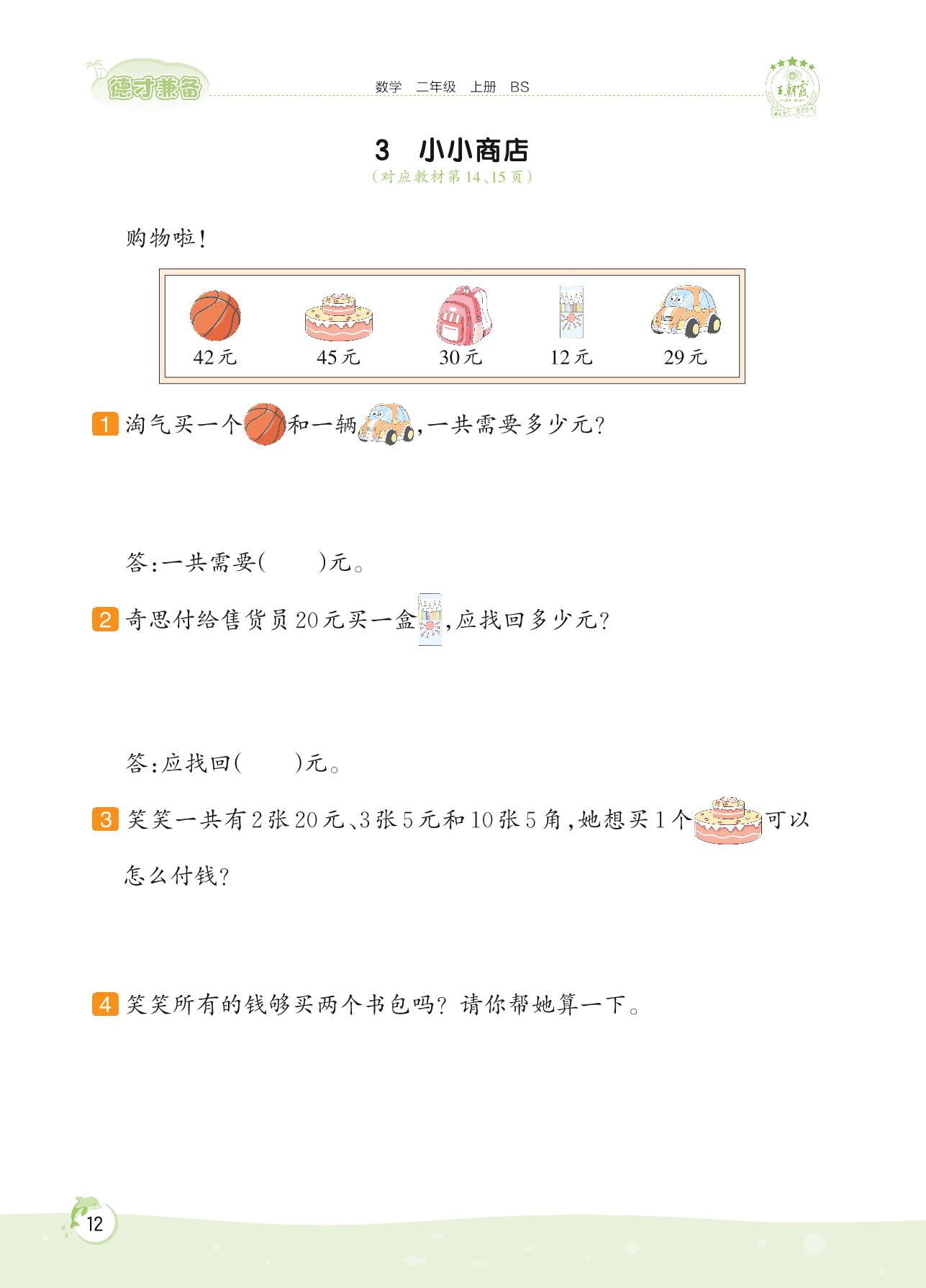 2022上册二年级数学北师版 第二单元 购物——3 小小商店
