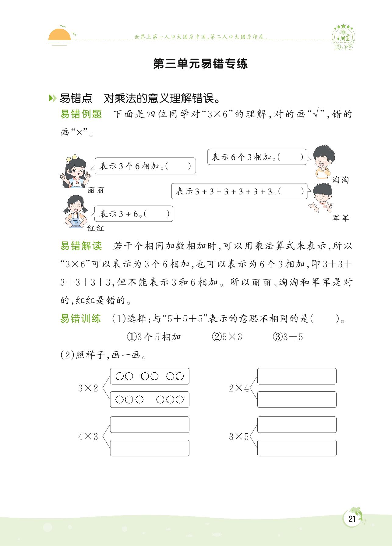 2022上册二年级数学北师版 第三单元 数一数与乘法——第三单元易错专练