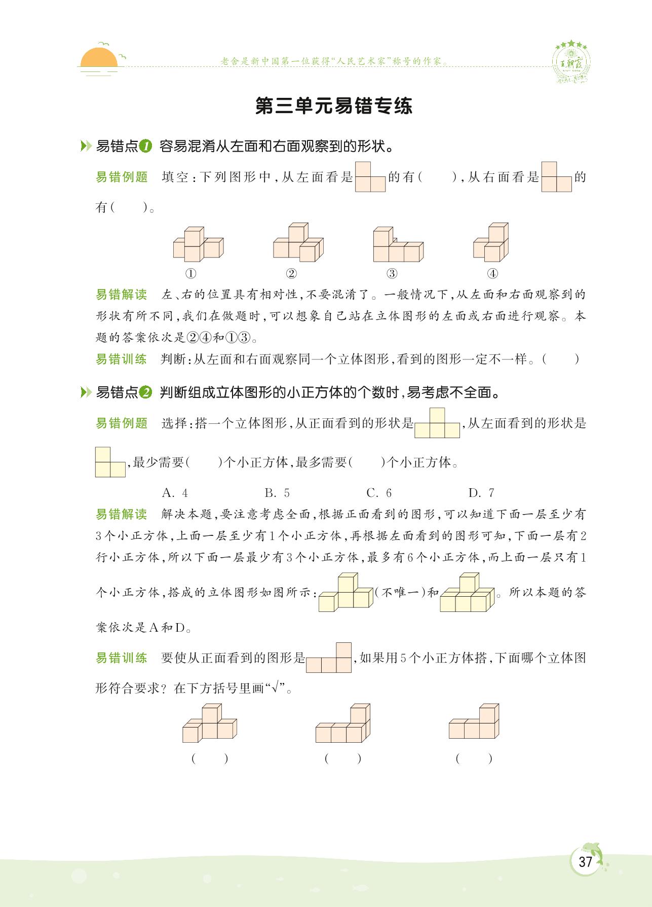 2022上册六年级数学北师版 第三单元 观察物体——第三单元易错专练