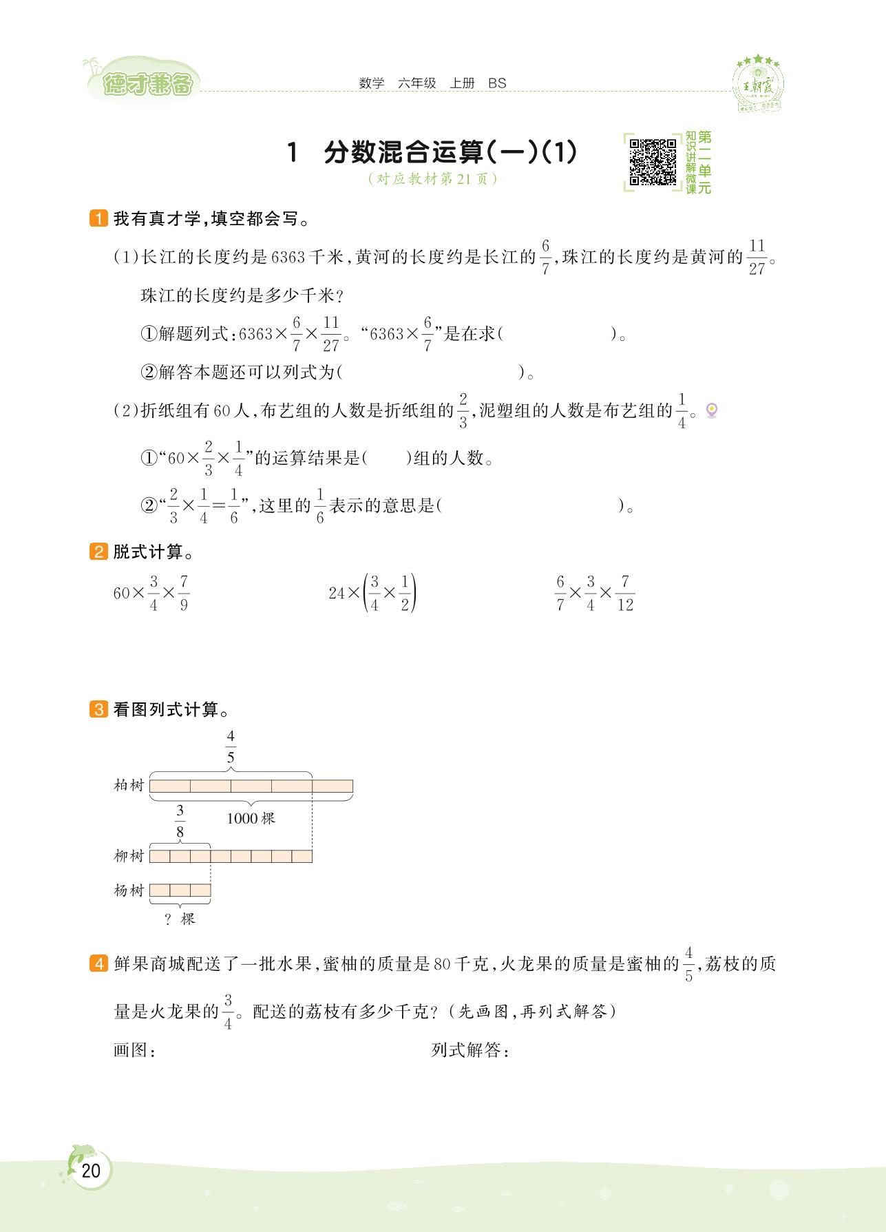 2022上册六年级数学北师版 第二单元 分数混合运算——1 分数混合运算(一)(1)