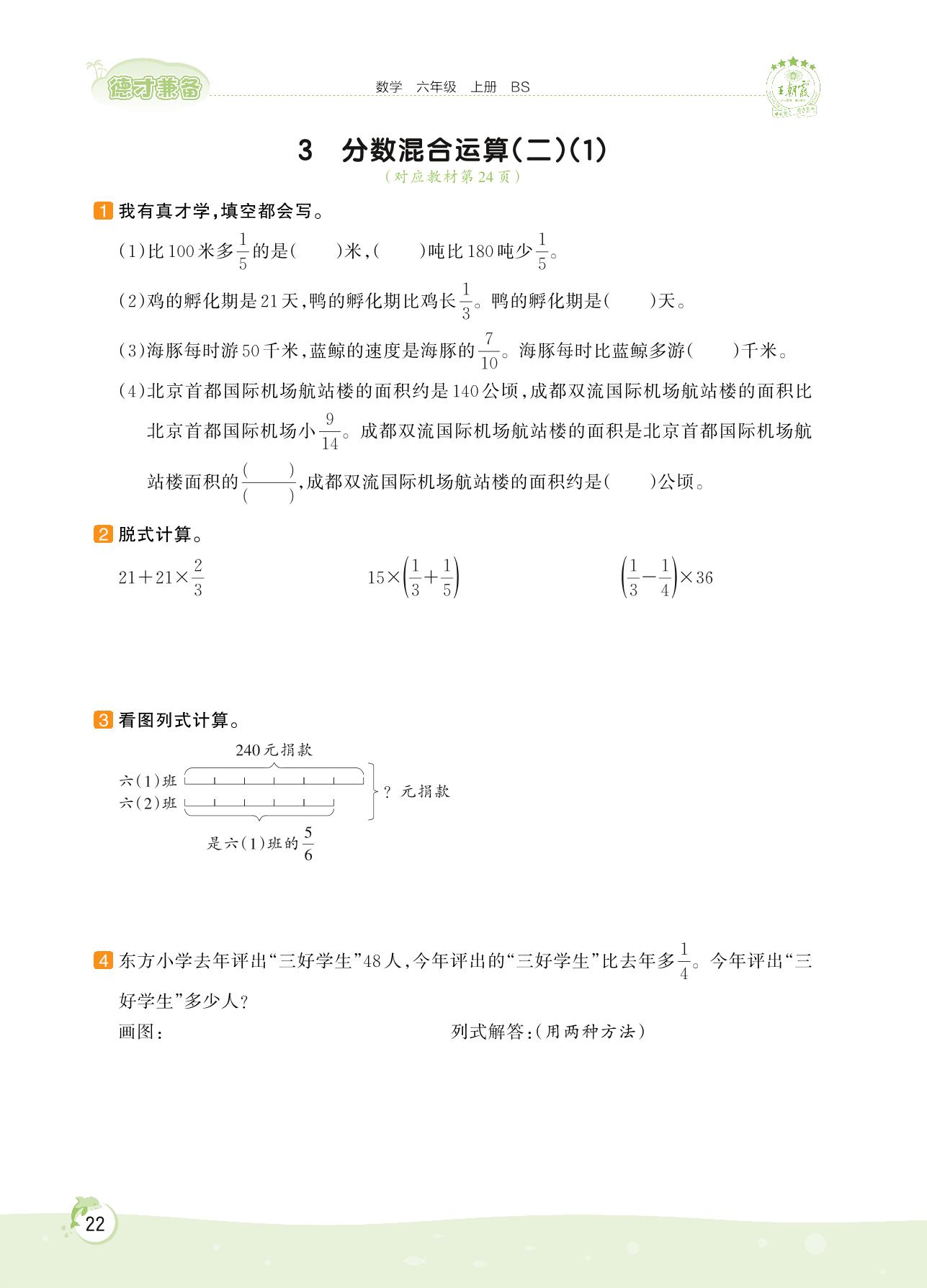 2022上册六年级数学北师版 第二单元 分数混合运算——3 分数混合运算(二)(1)