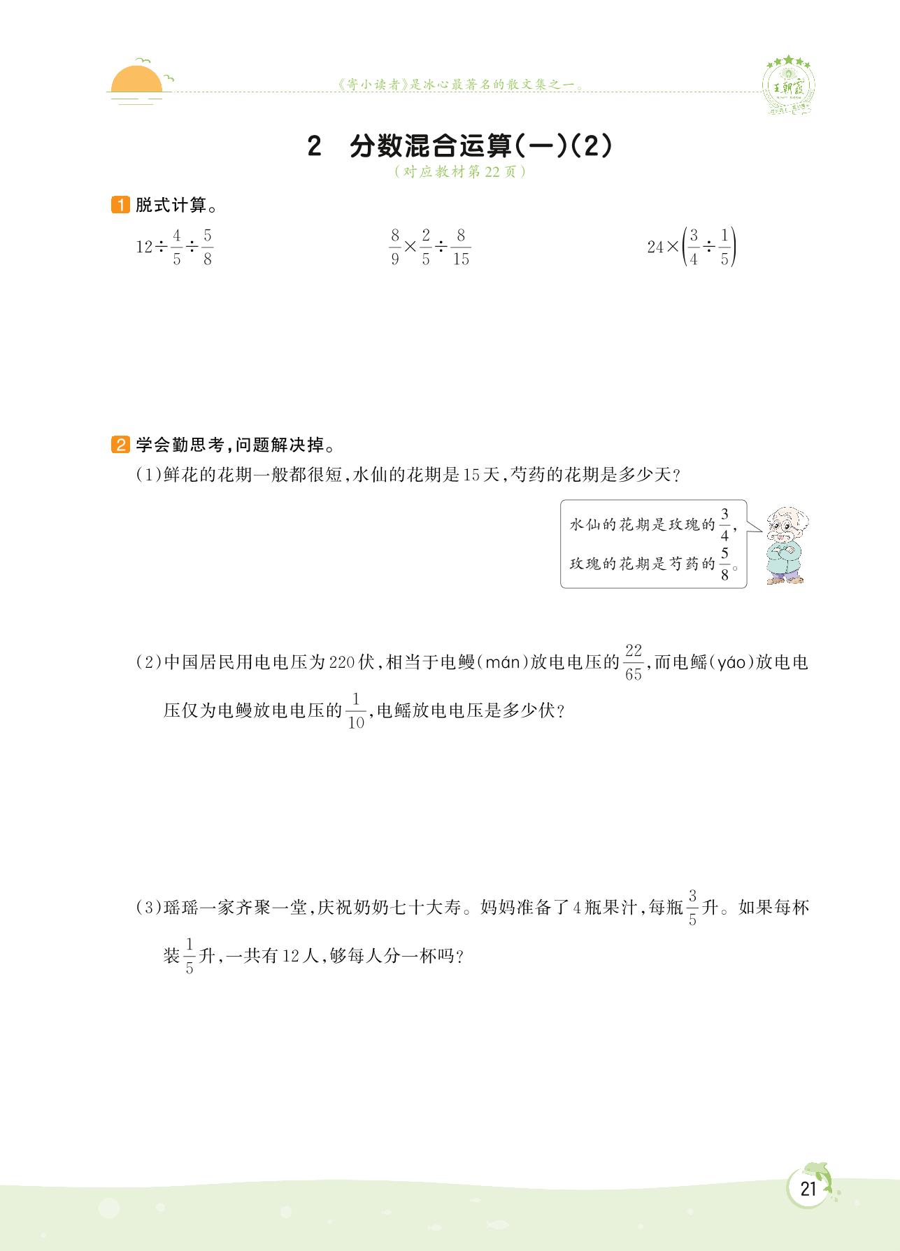 2022上册六年级数学北师版 第二单元 分数混合运算——2 分数混合运算(一)(2)