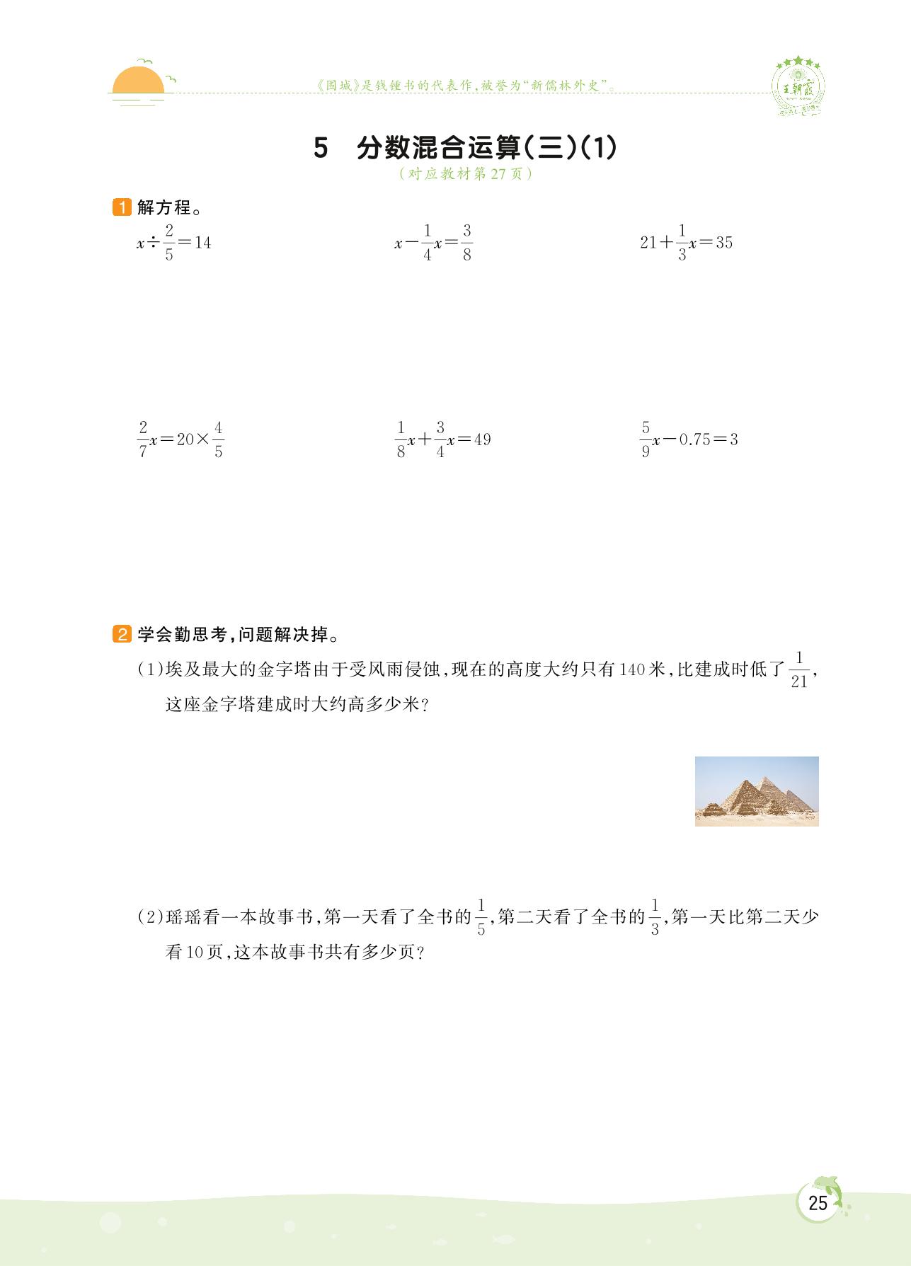 2022上册六年级数学北师版 第二单元 分数混合运算——5 分数混合运算(三)(1)