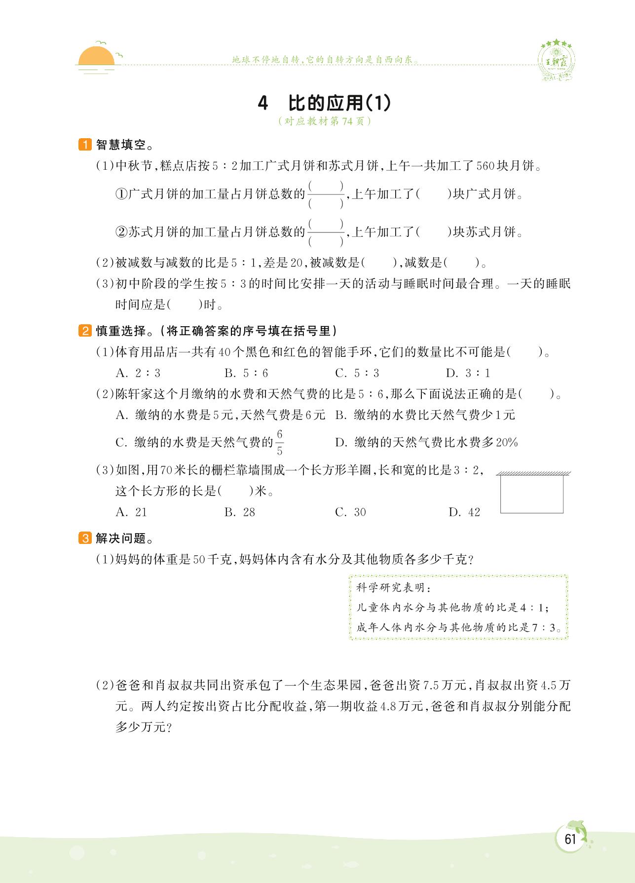 2022上册六年级数学北师版 第六单元 比的认识——4 比的应用(1)