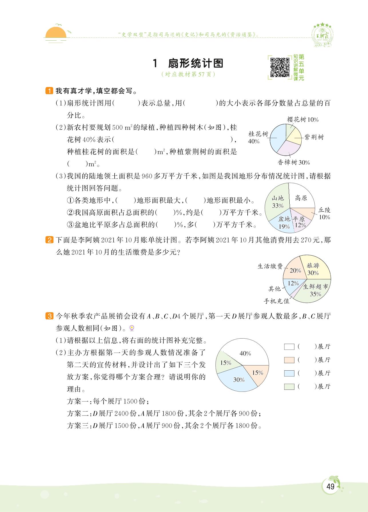 2022上册六年级数学北师版 第五单元 数据处理——1 扇形统计图