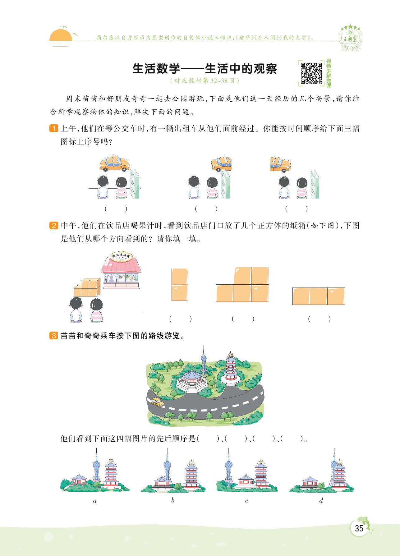 2022上册六年级数学北师版 第三单元 观察物体——生活数学 生活中的观察
