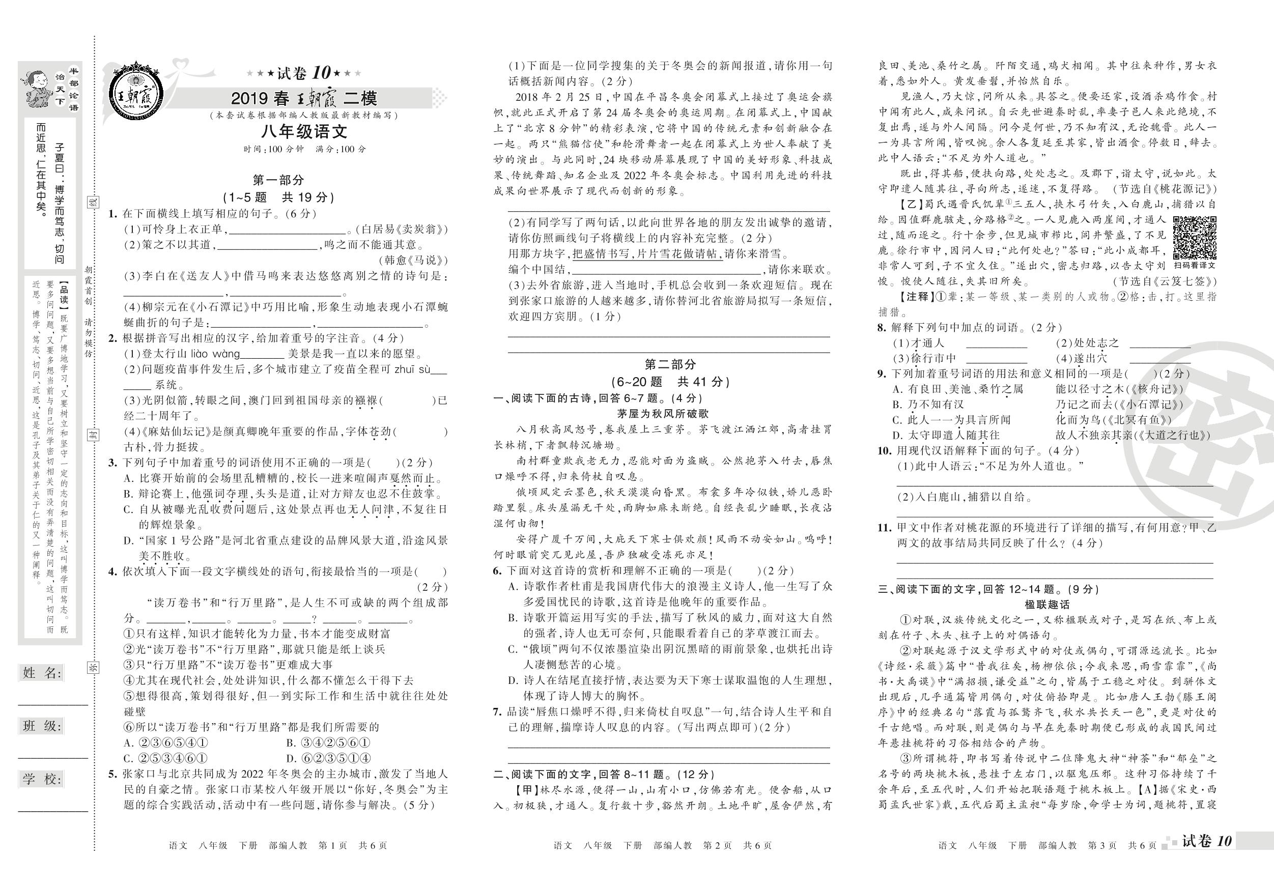 王朝霞期末模拟卷八年级下册语文(人教版)_R21080235929【10】