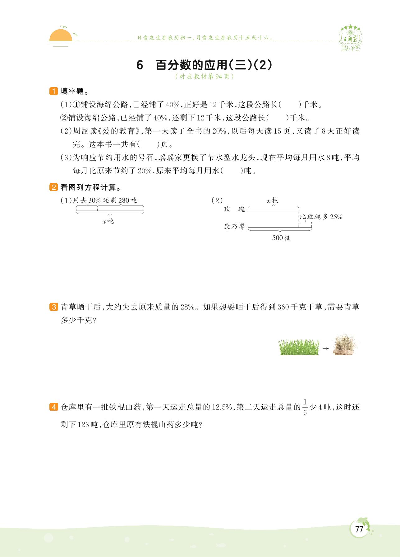 2022上册六年级数学北师版 第七单元 百分数的应用——6 百分数的应用(三)(2)