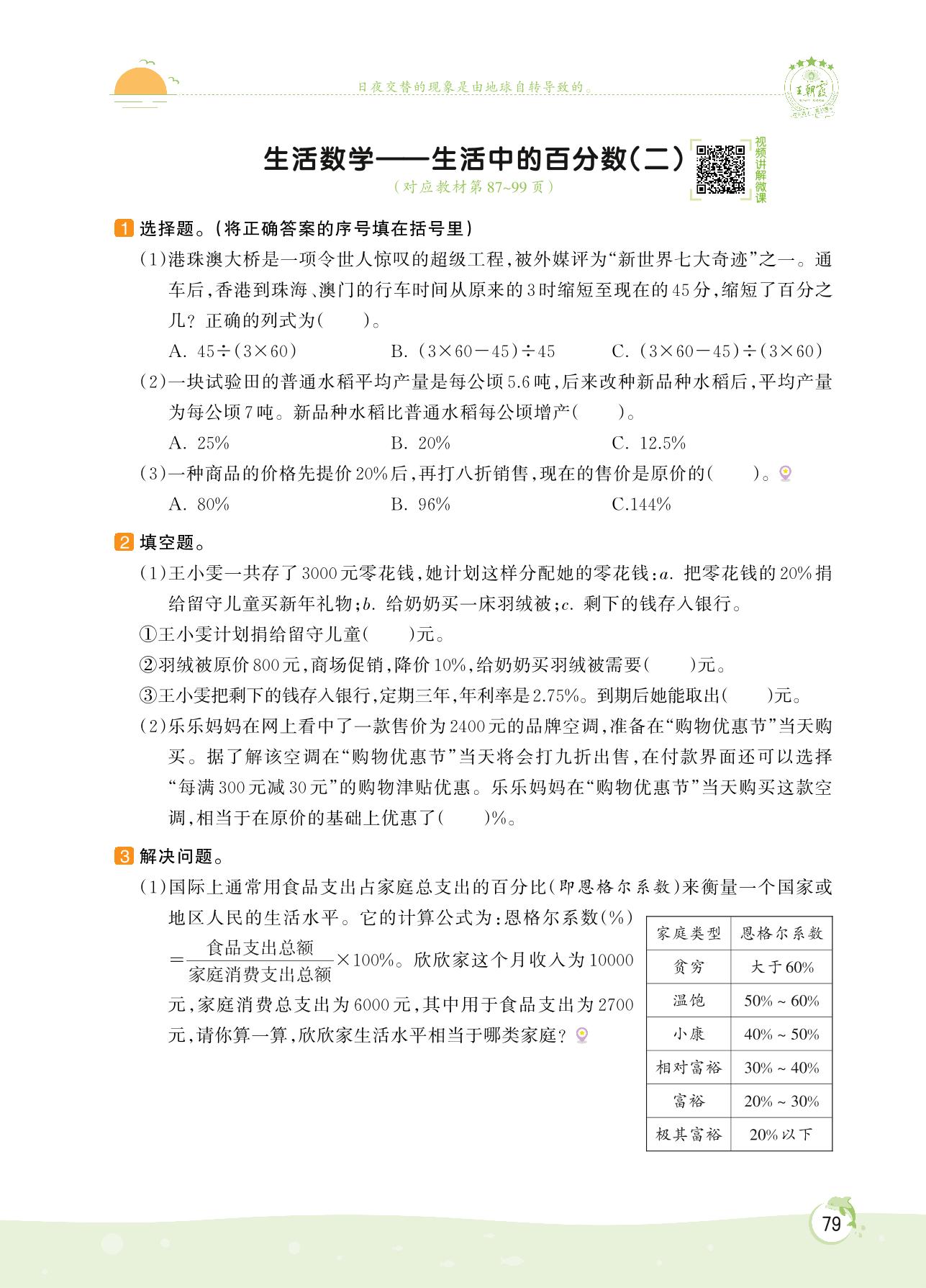 2022上册六年级数学北师版 第七单元 百分数的应用——生活数学 生活中的百分数(二)