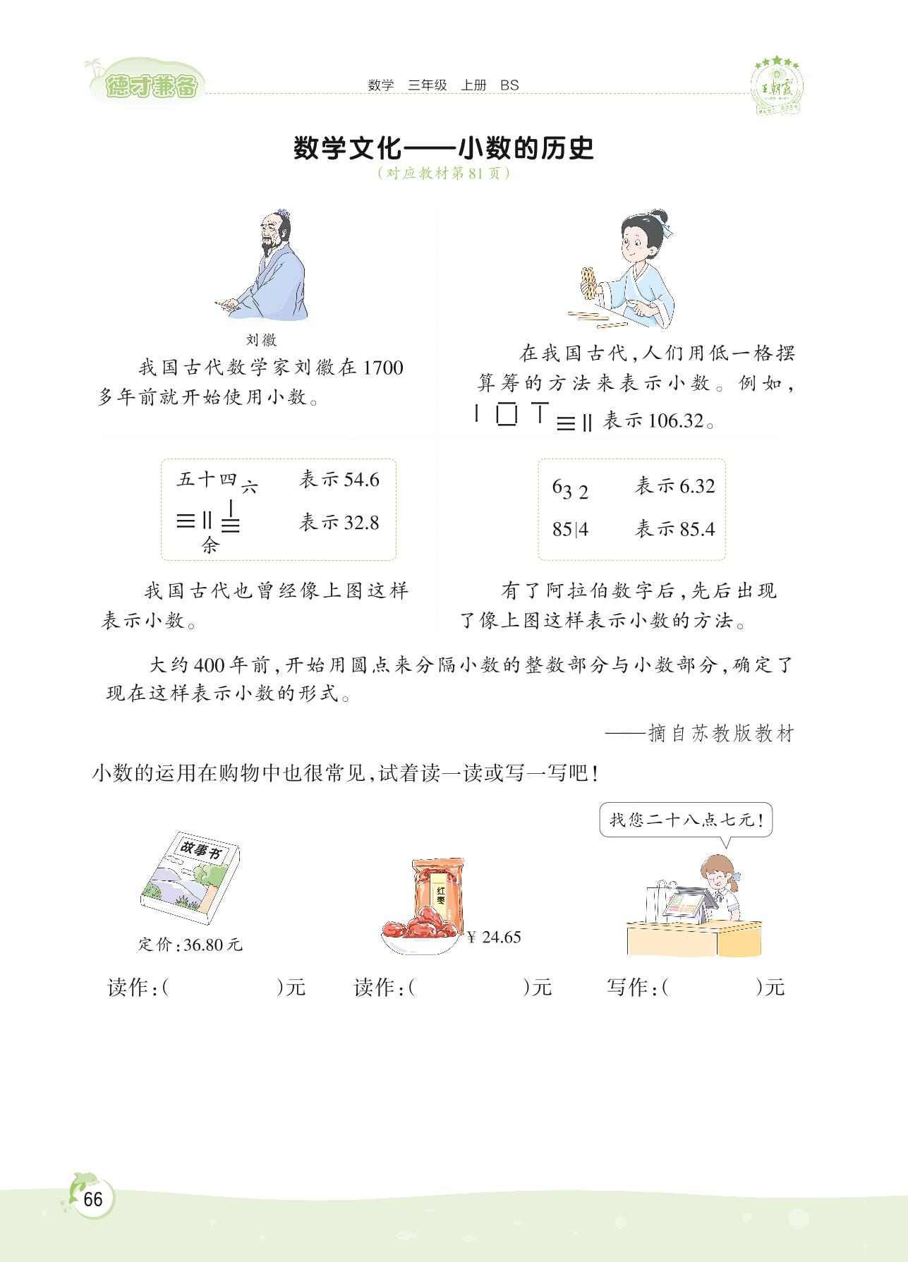2022上册三年级数学北师版 第八单元 认识小数——数学文化 小数的历史