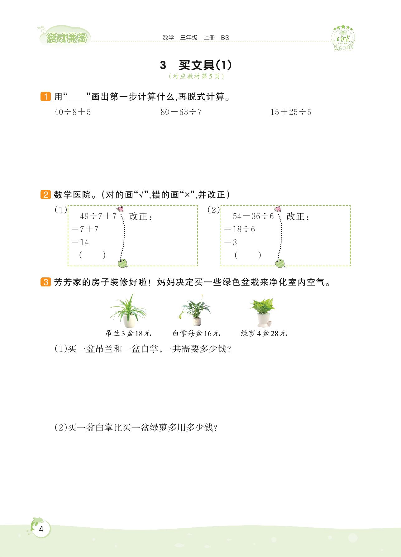 2022上册三年级数学北师版 第一单元 混合运算——3 买文具(1)