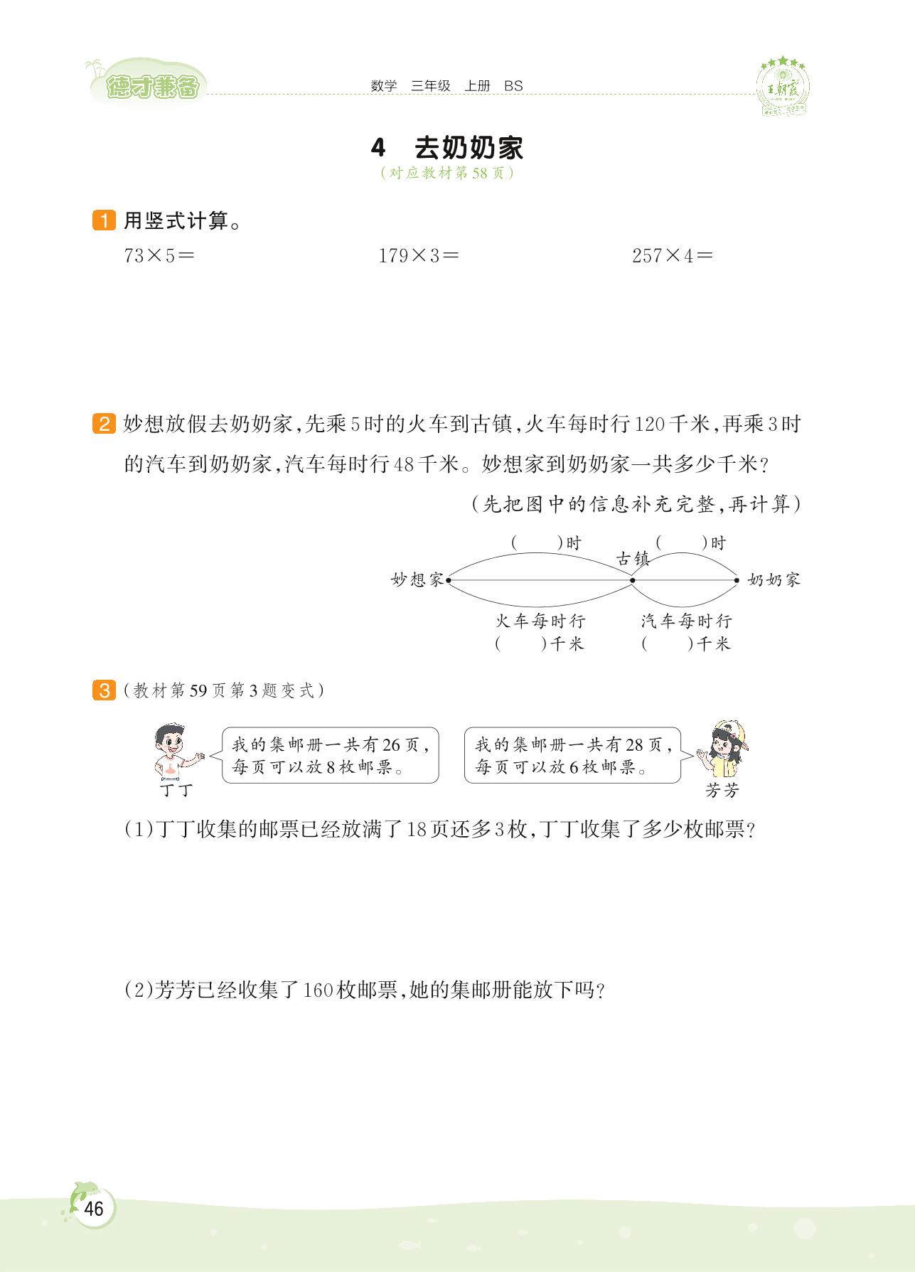 2022上册三年级数学北师版 第六单元 乘法——4 去奶奶家