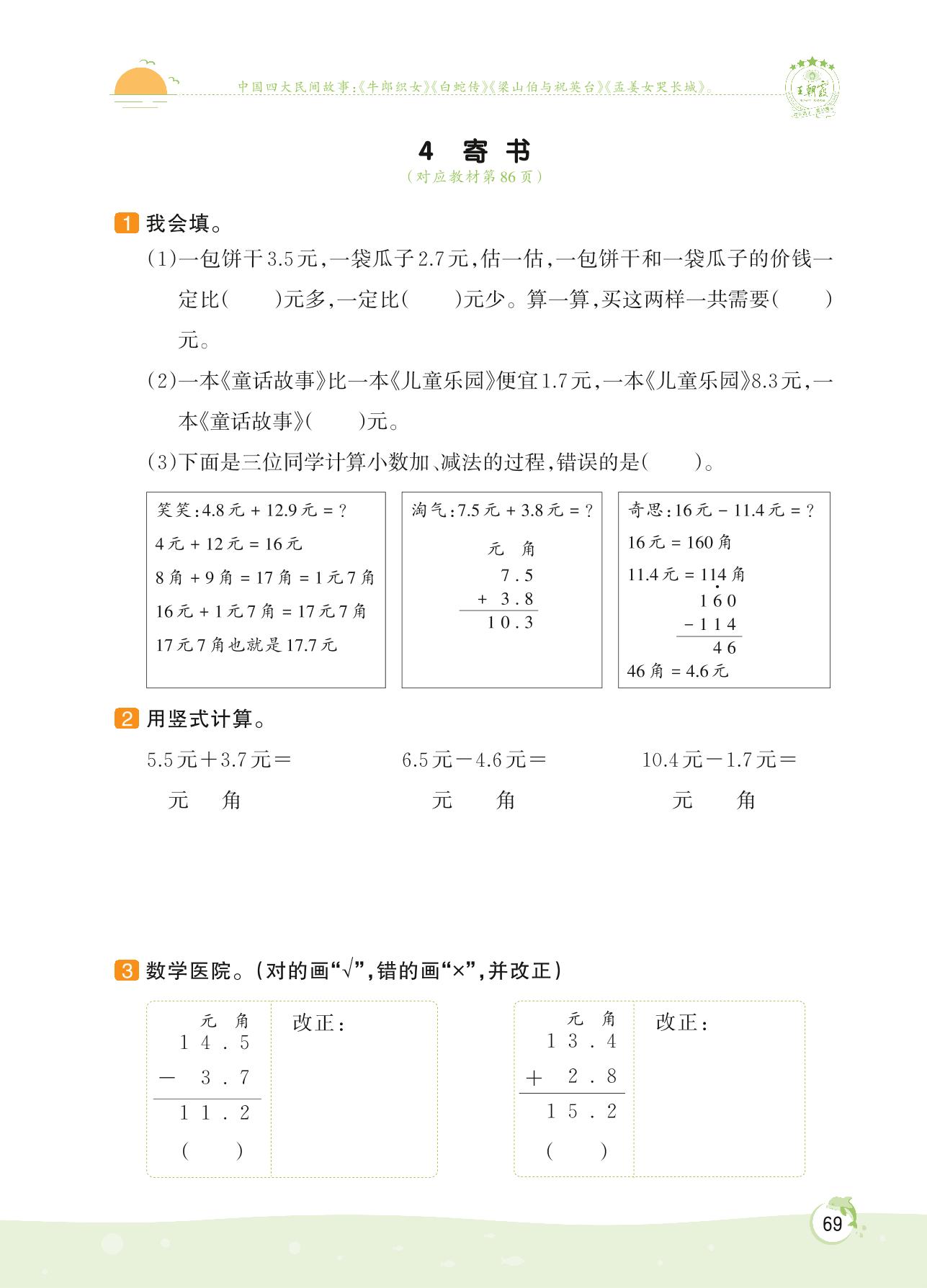 2022上册三年级数学北师版 第八单元 认识小数——4 寄书