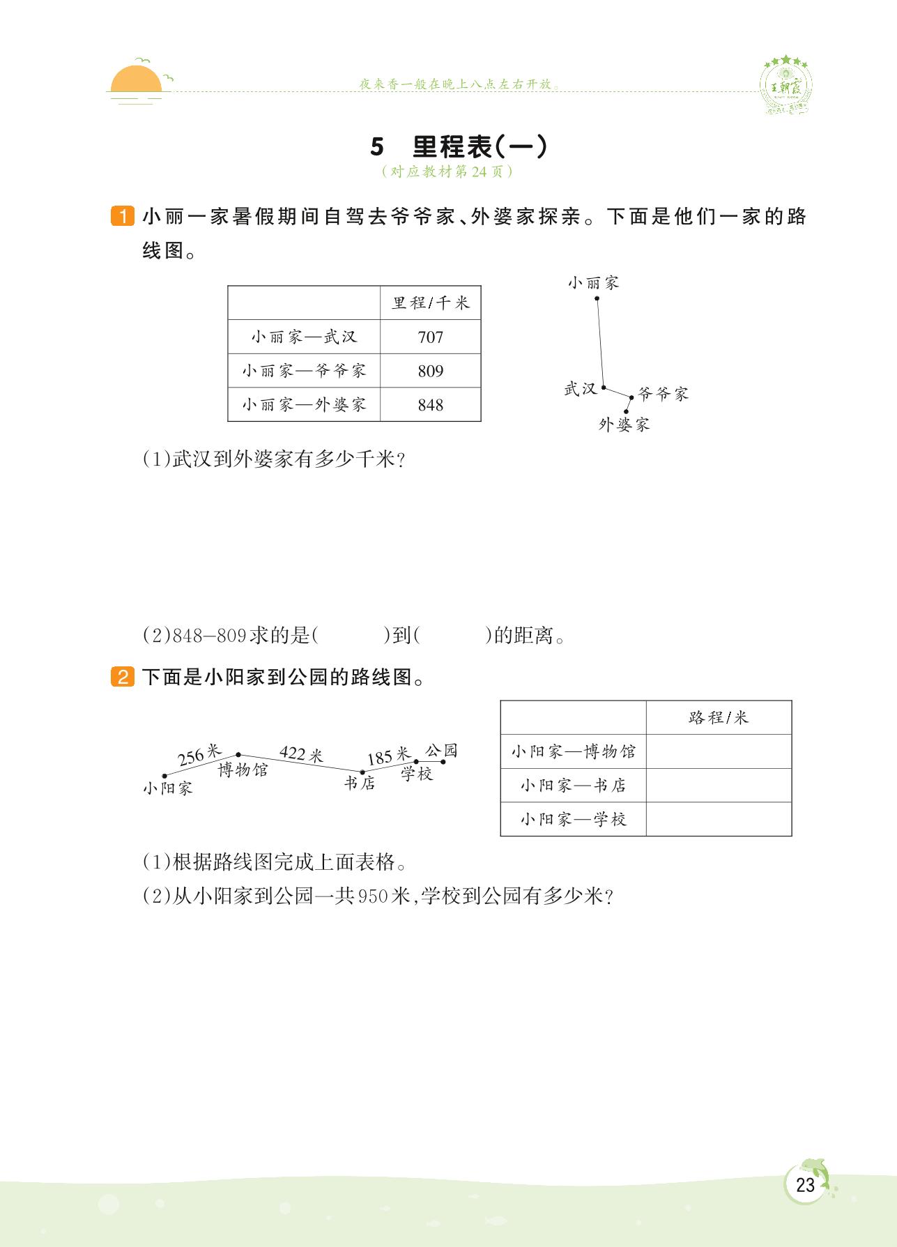 2022上册三年级数学北师版 第三单元 加与减——5 里程表(一)