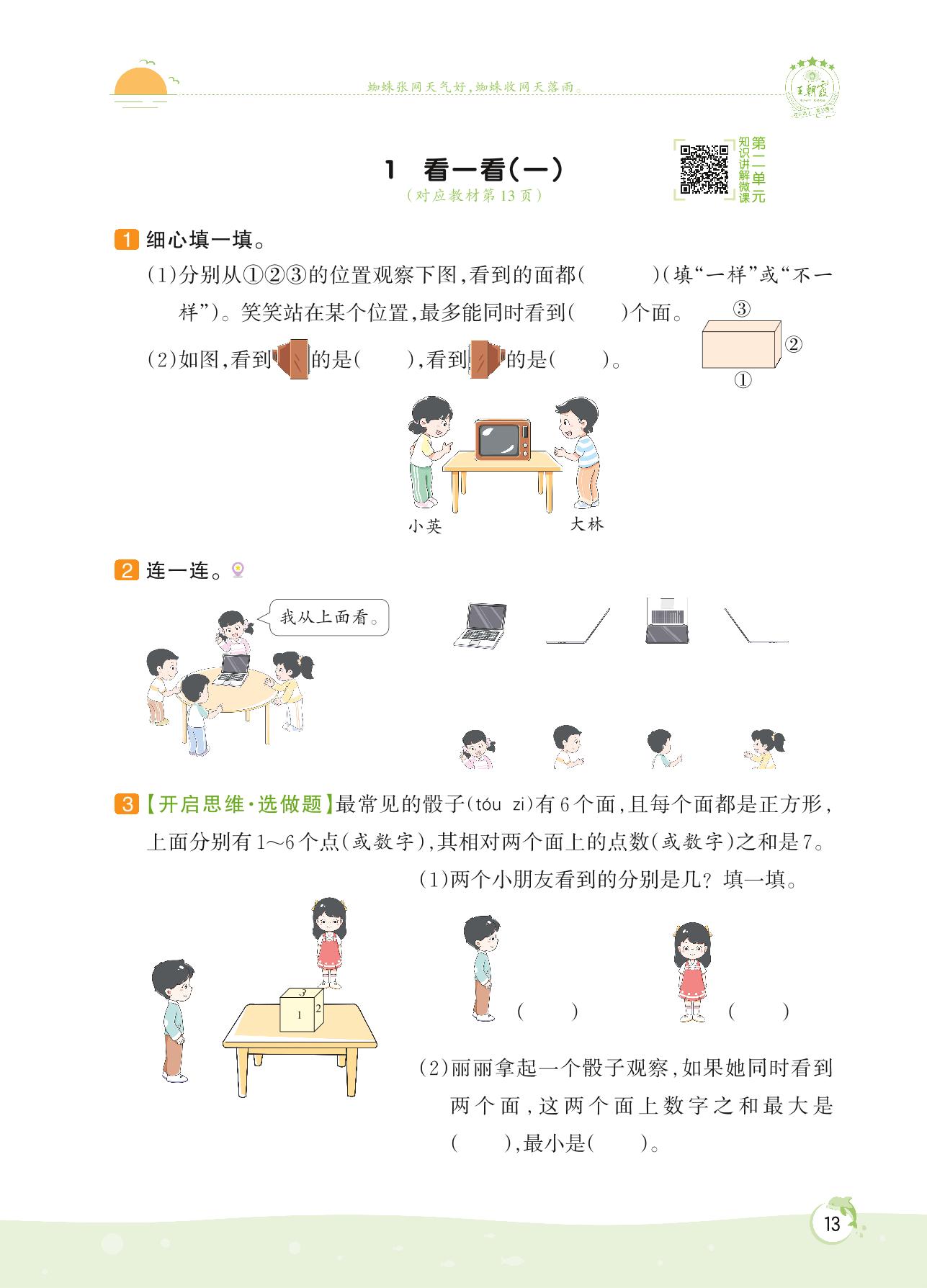 2022上册三年级数学北师版 第二单元 观察物体——1 看一看(一)