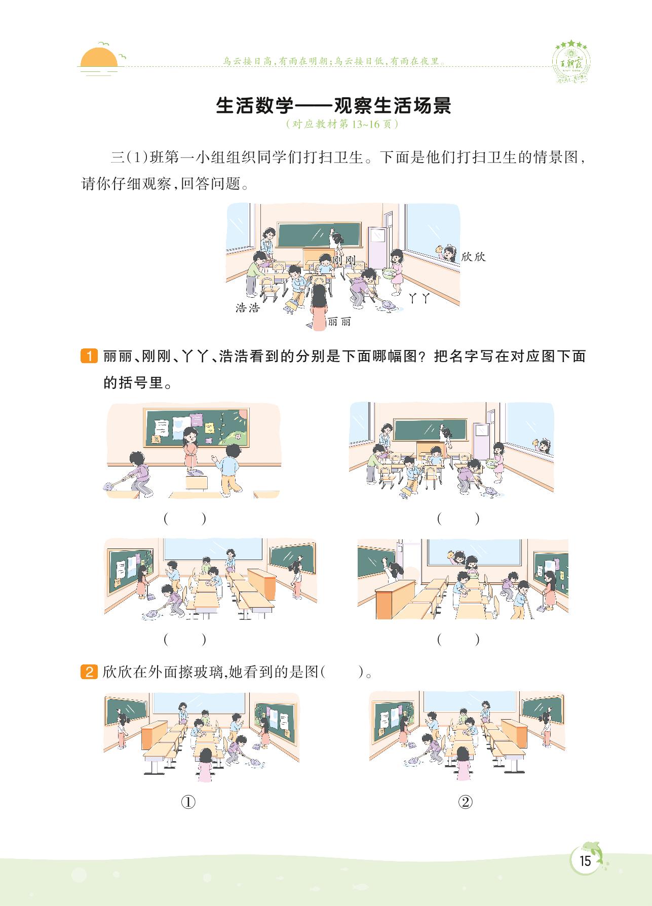 2022上册三年级数学北师版 第二单元 观察物体——生活数学 观察生活场景