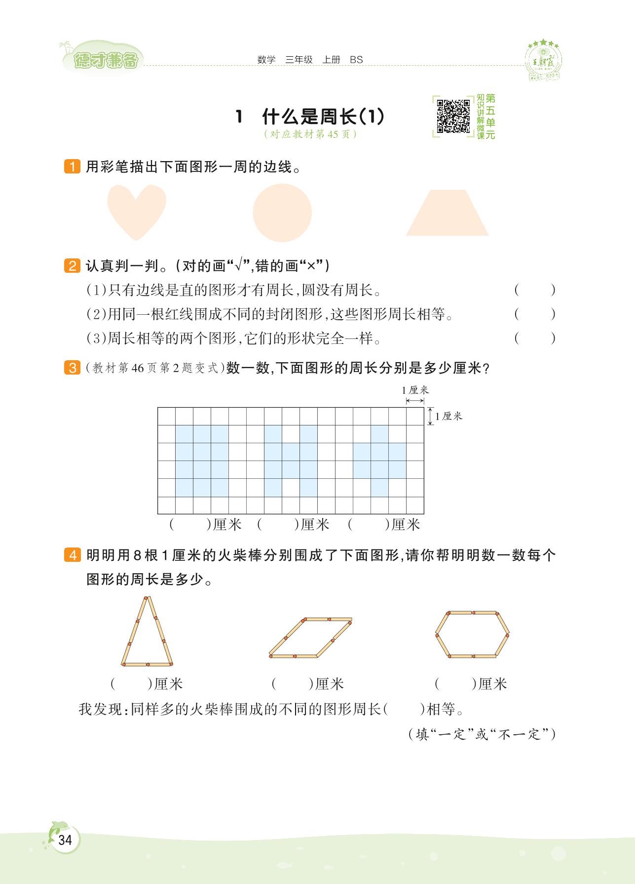 2022上册三年级数学北师版 第五单元 周长——1 什么是周长(1)