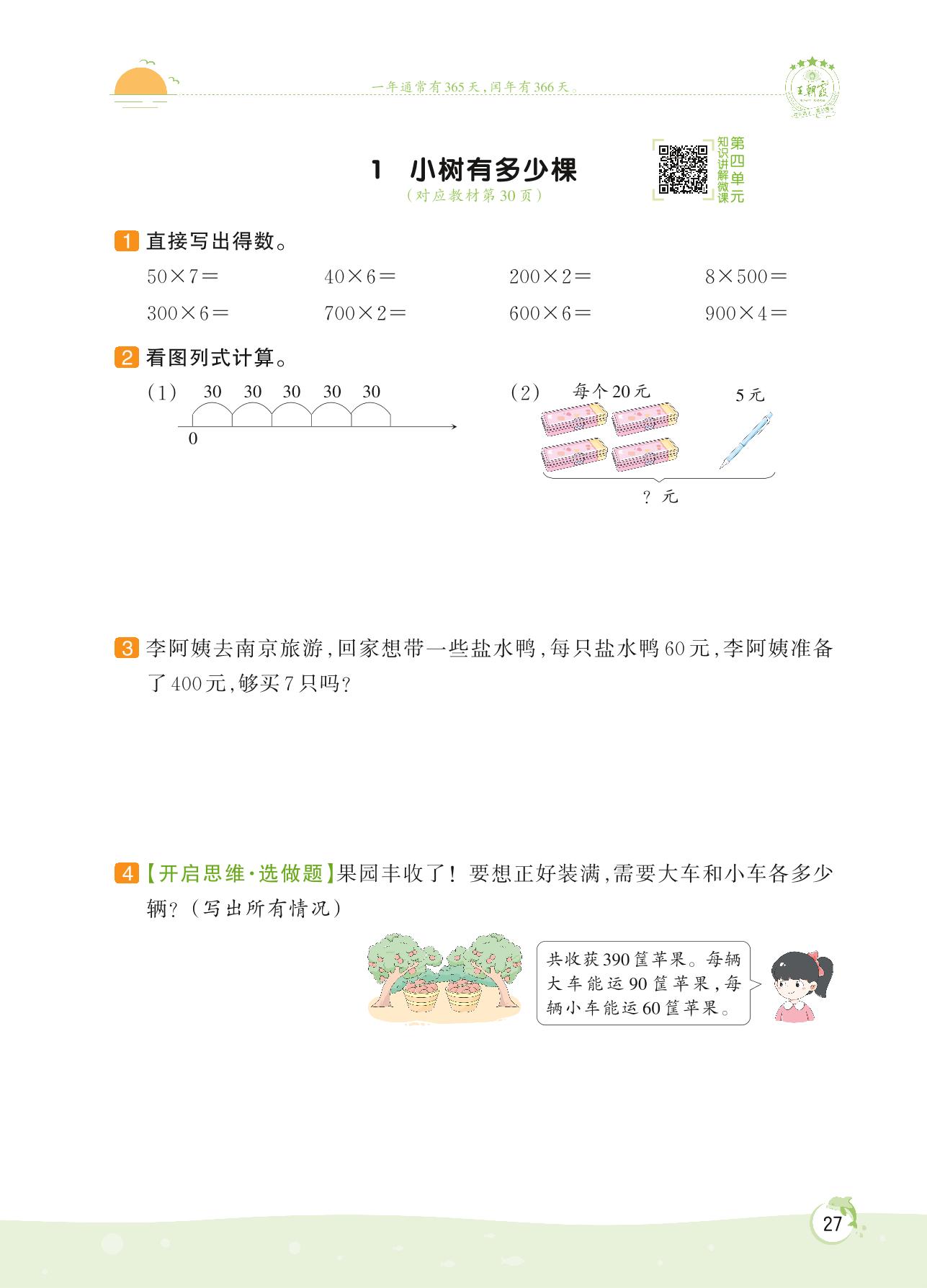 2022上册三年级数学北师版 第四单元 乘与除——1 小树有多少棵
