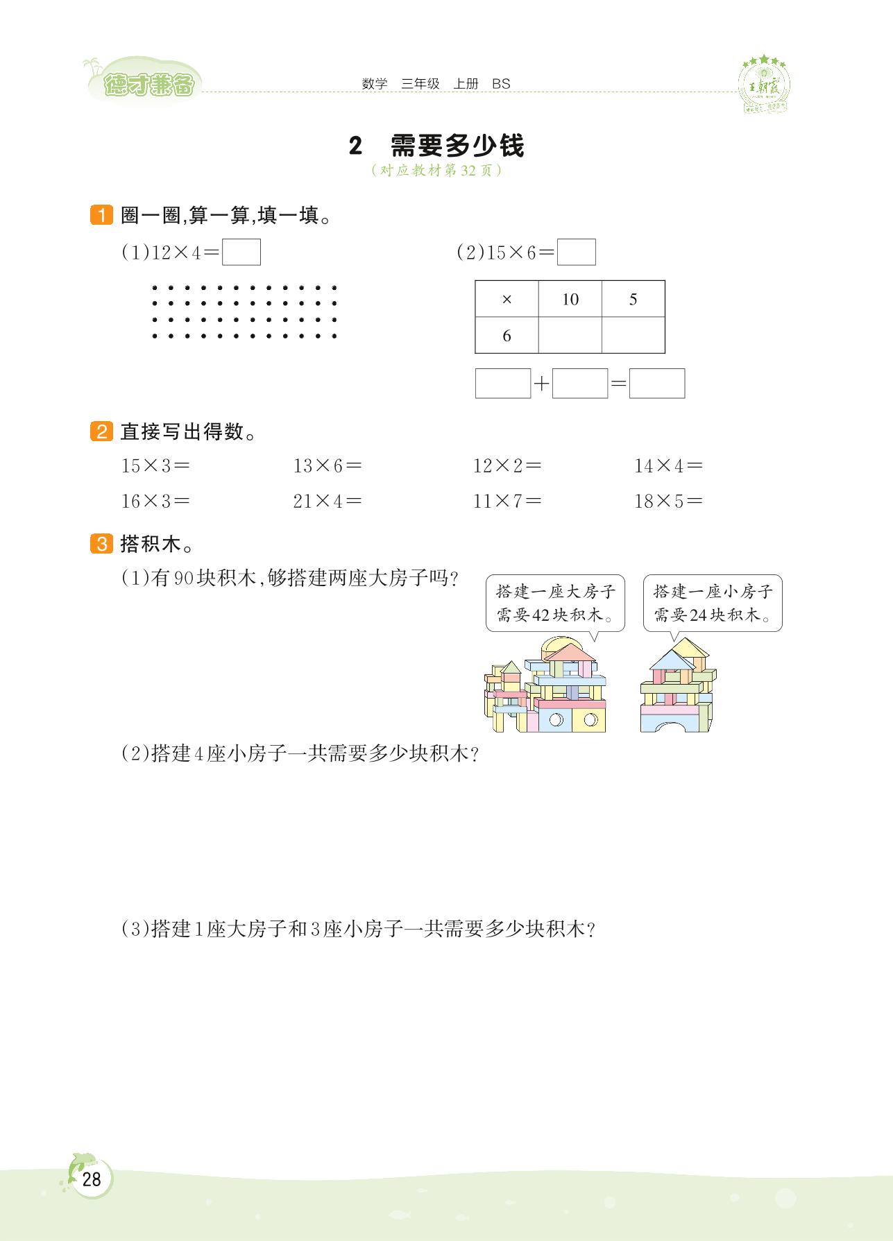 2022上册三年级数学北师版 第四单元 乘与除——2 需要多少钱