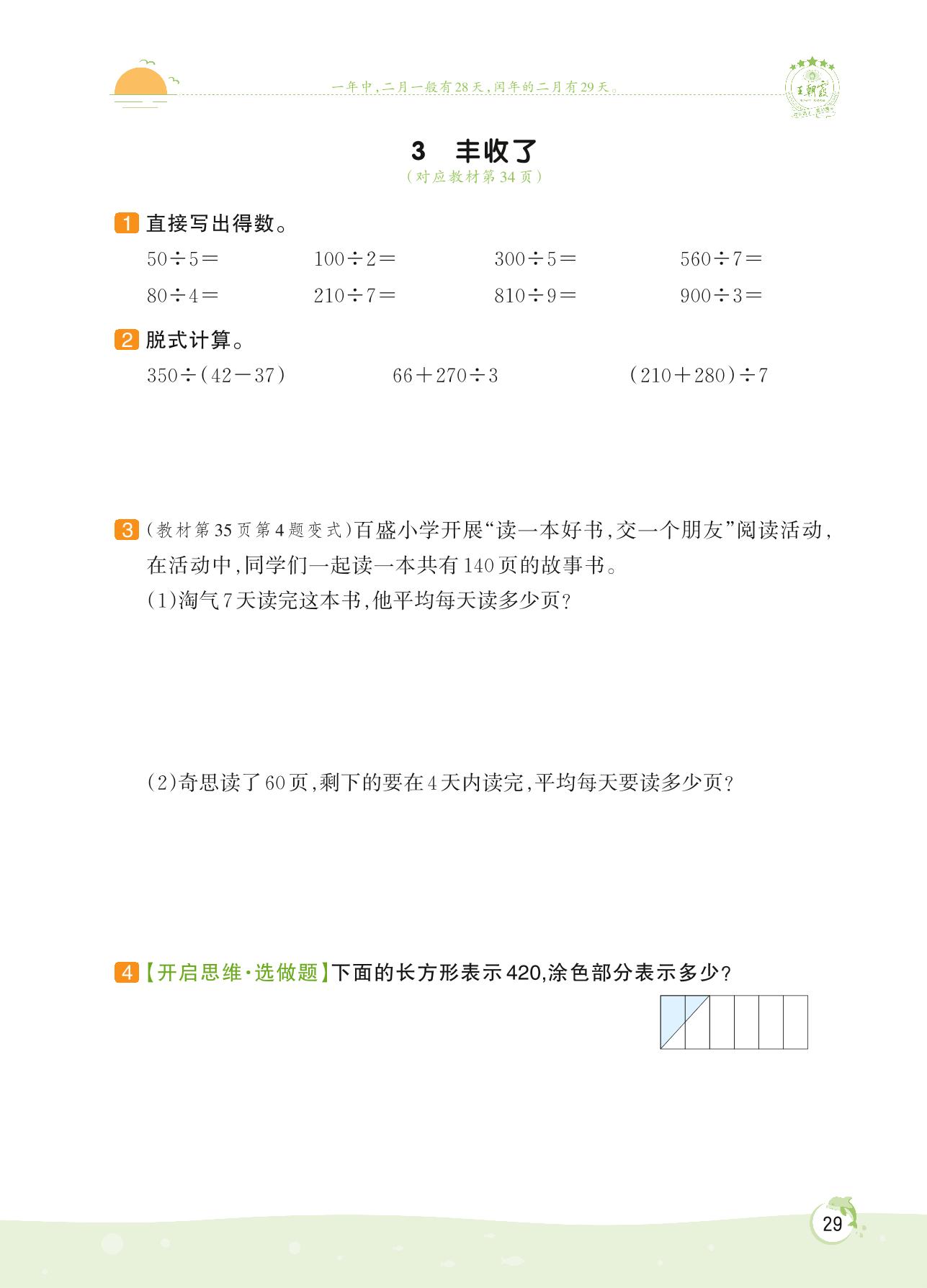 2022上册三年级数学北师版 第四单元 乘与除——3 丰收了