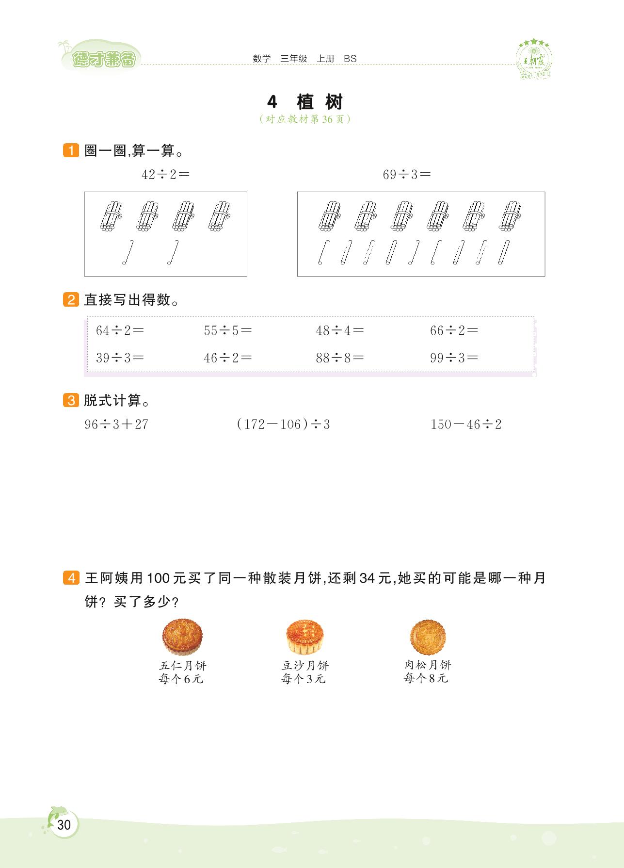 2022上册三年级数学北师版 第四单元 乘与除——4 植树