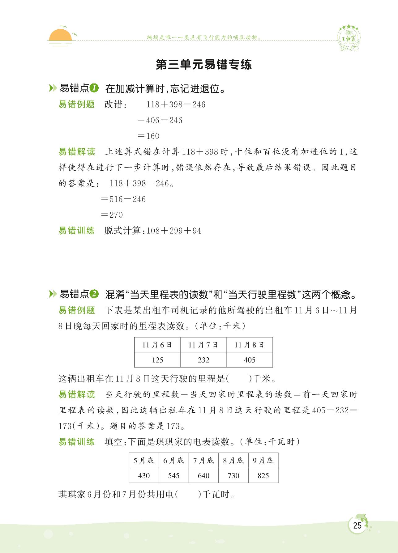 2022上册三年级数学北师版 第三单元 加与减——第三单元易错专练
