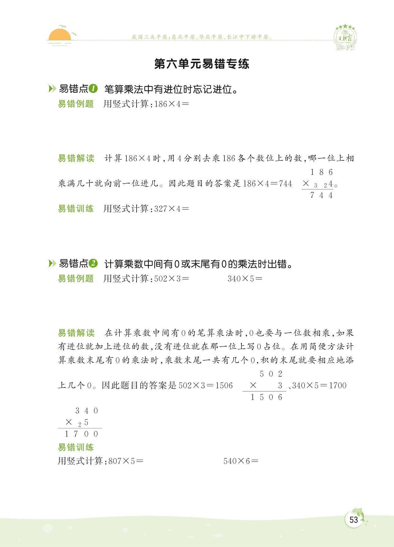 2022上册三年级数学北师版 第六单元 乘法——第六单元易错专练
