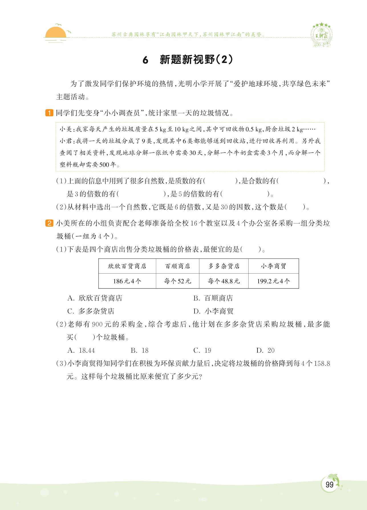 2022上册五年级数学北师版 总复习——6 新题新视野(2)