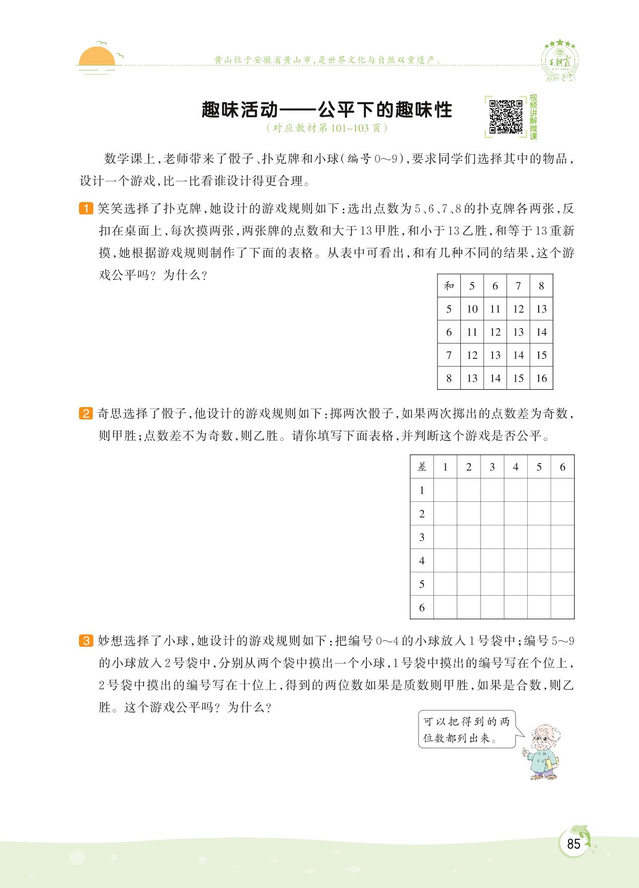 2022上册五年级数学北师版 第七单元 可能性——趣味活动 公平下的趣味性